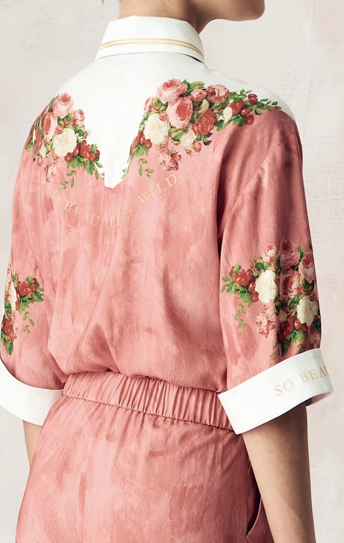 Источником вдохновения при создании принта НАТЮРМОРТ. ПИОНЫ И ВИШНИ послужила живопись фламандских художников 17 века. Цветочная гирлянда выполняет традиционную функцию – прославляет фигуру, которую она окружает: современную женщину, настойчивую, управляющую и выполняющую все более значимую роль в социуме.