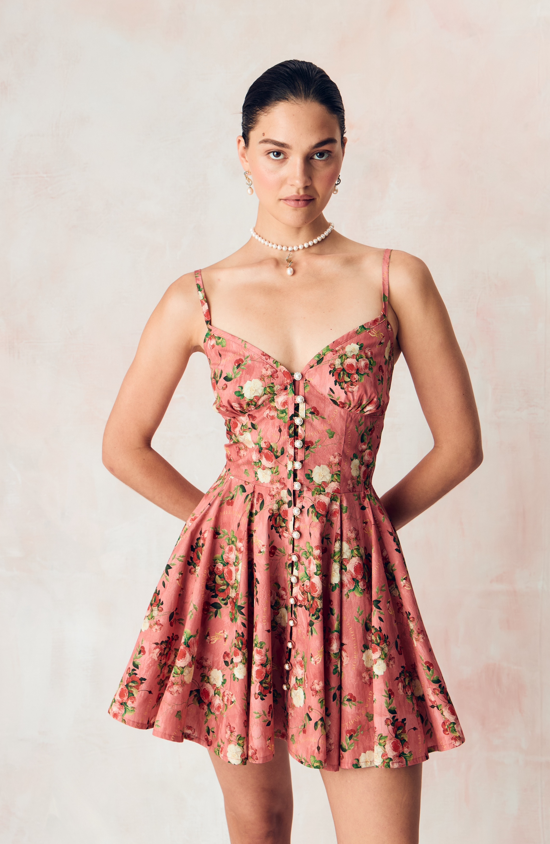 Цветы, наделенные скрытым смыслом, отражают не только особый символизм, но демонстрируют богатство земных даров, изобилие и красоту мира, силу и статус своей обладательницы. Нежный розовый тон прекрасно сочетает в себе роскошные оттенки, служащие фоном для ярких соблазнительных вишнёвых акцентов, что добавляет глубину и визуальную привлекательность.