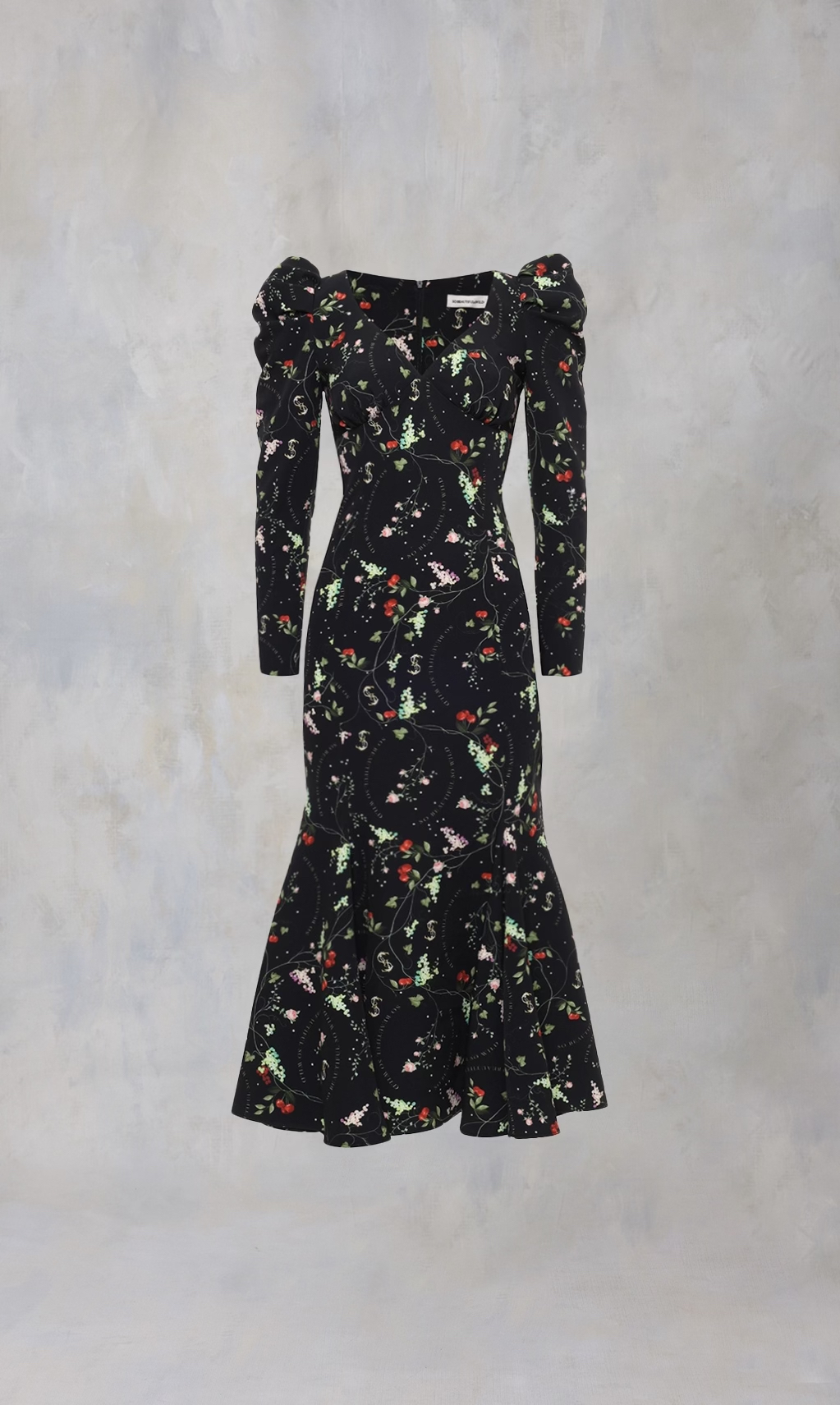 Платье с авторским принтом "ВЫШНЕВЫЙ САД"