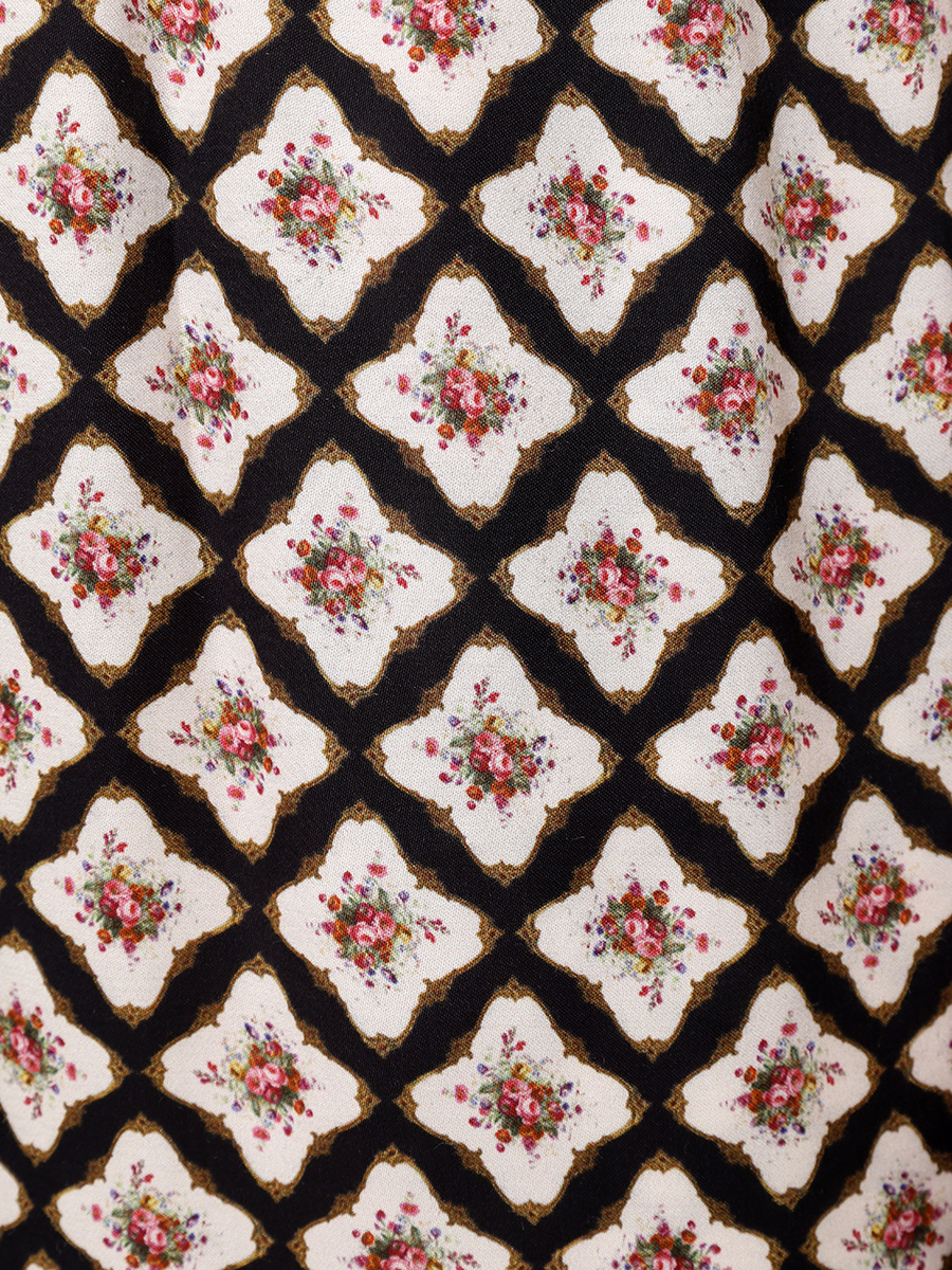 Орнаментальная композиция, содержащая внутри миниатюрный цветочный букет, окутана абстрактными мотивами, создающими ощущение ценности и уважения. Этот принт не только отражает близость к традициям аристократии, но и становится символом стремления к элегантности и утонченности.