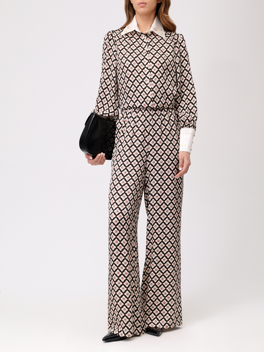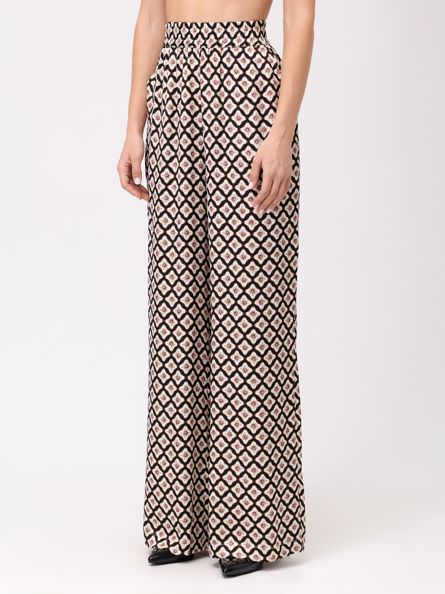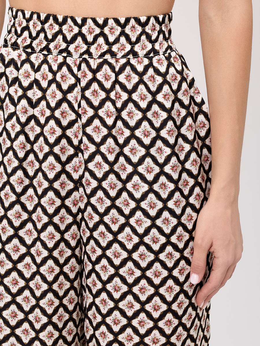 Брюки из сатиновой вискозы с авторским принтом "ЦВЕТОЧНАЯ ГЕОМЕТРИЯ"