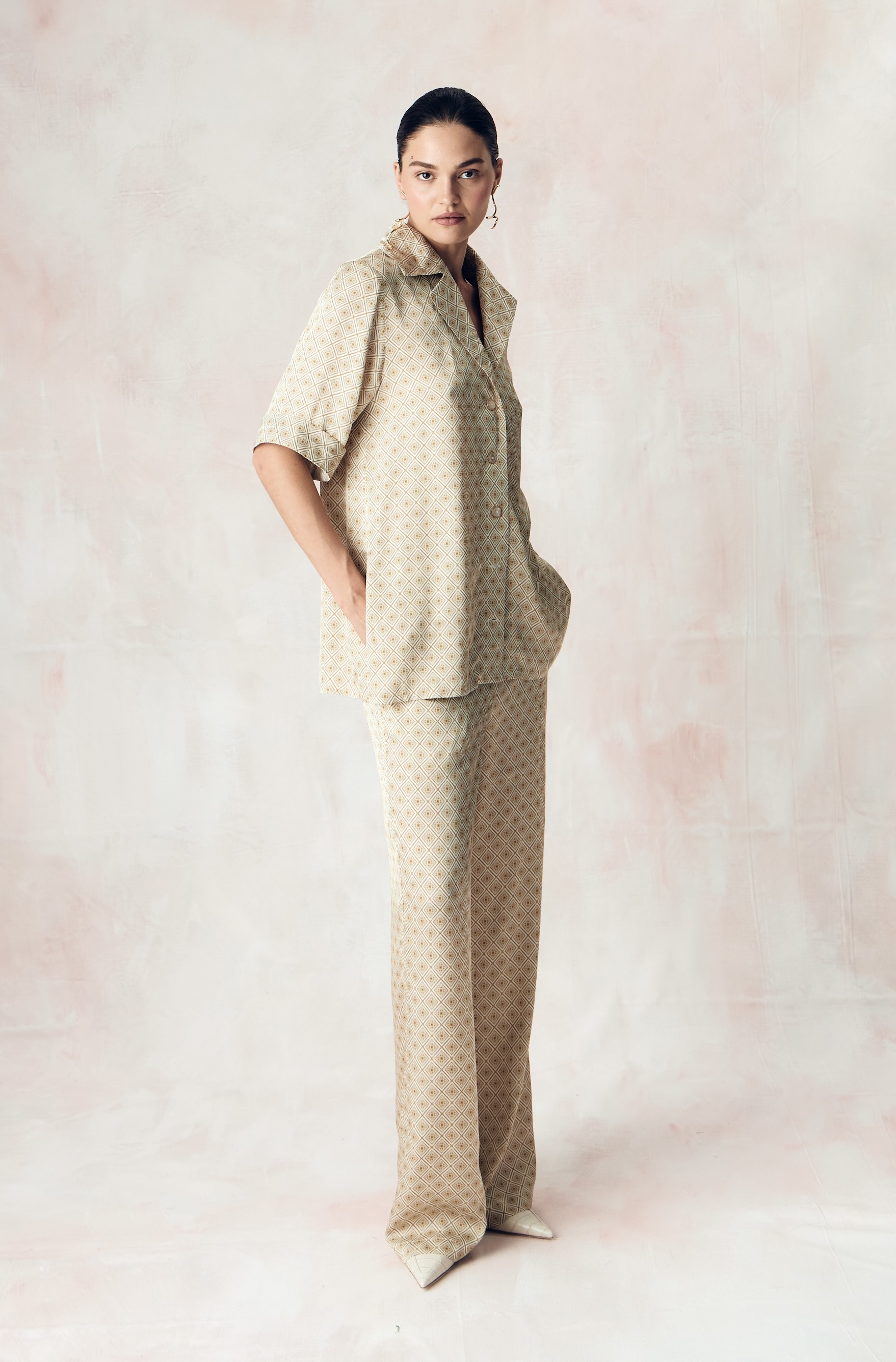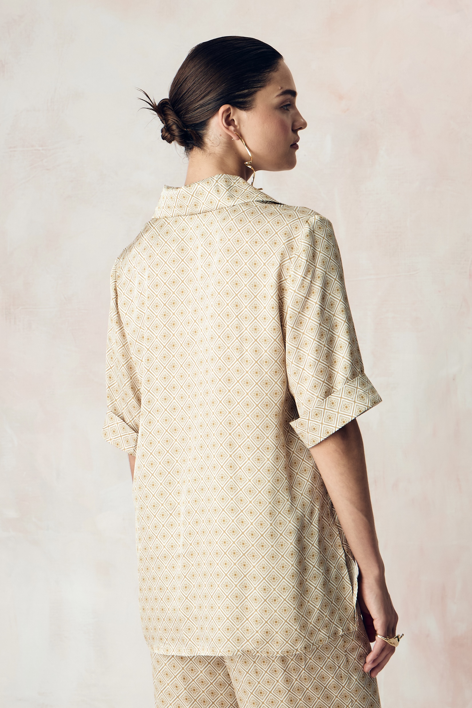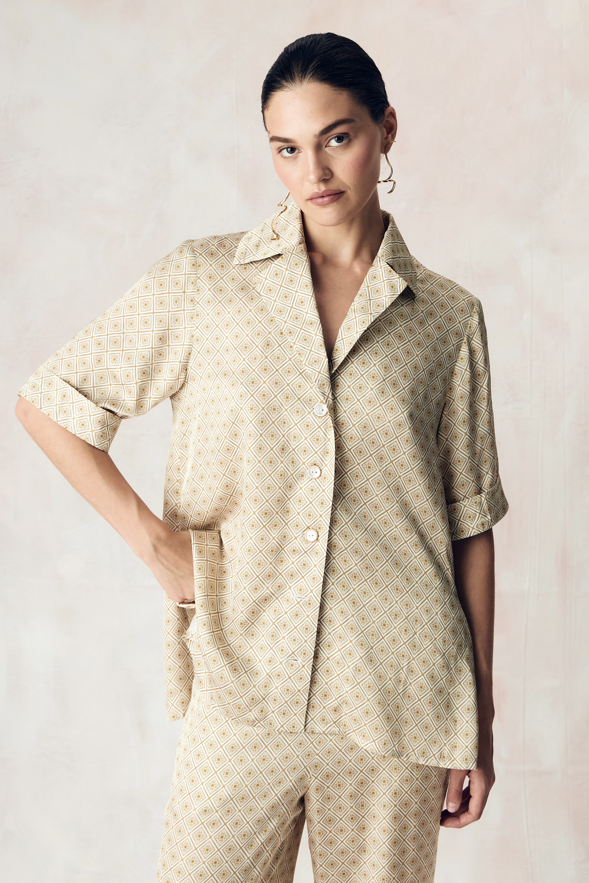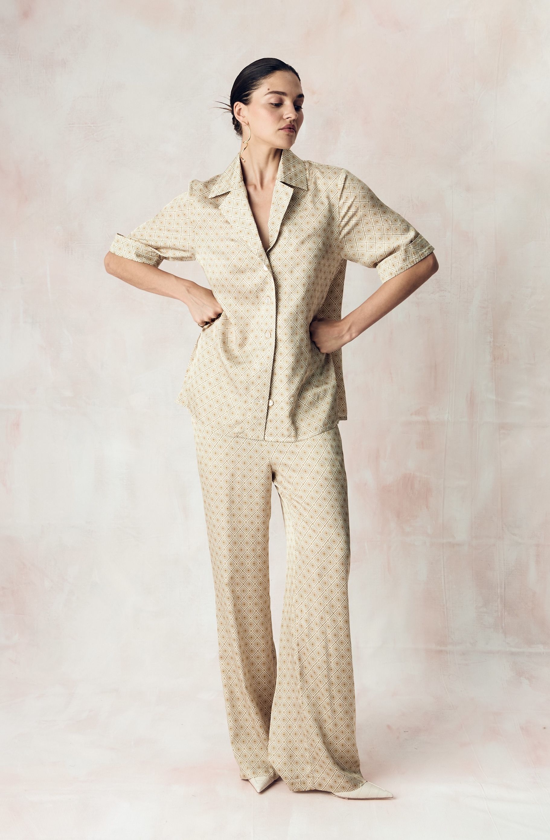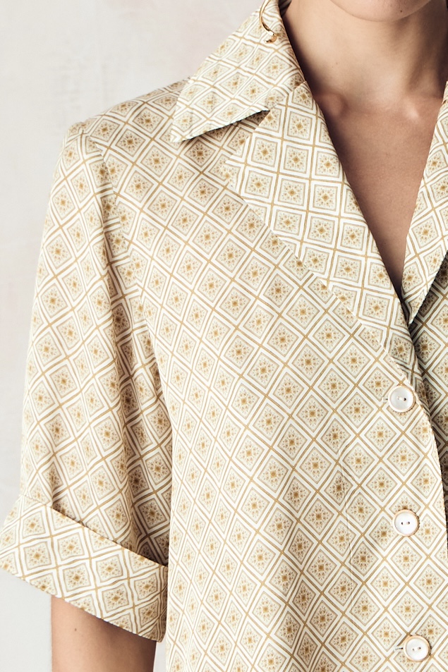 Костюм из сатиновой стрейч вискозы с авторским принтом "ЮВЕЛИРНАЯ ГЕОМЕТРИЯ.ЗОЛОТО"