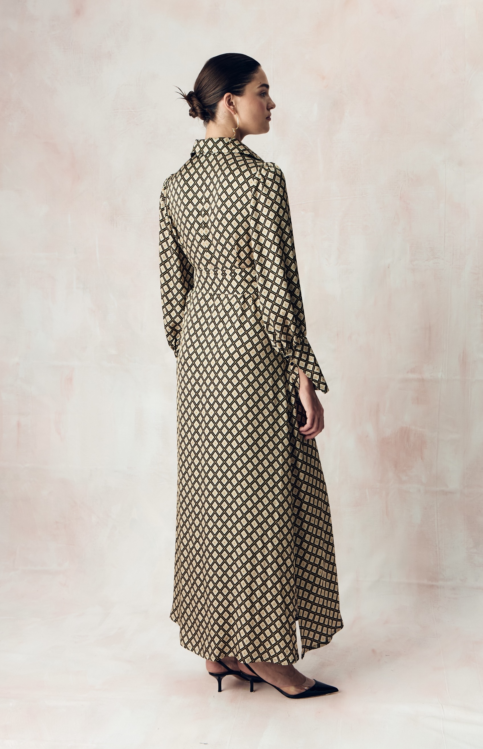 Платье из сатиновой стрейч вискозы с авторским принтом "ЮВЕЛИРНАЯ ГЕОМЕТРИЯ.ЗОЛОТО"