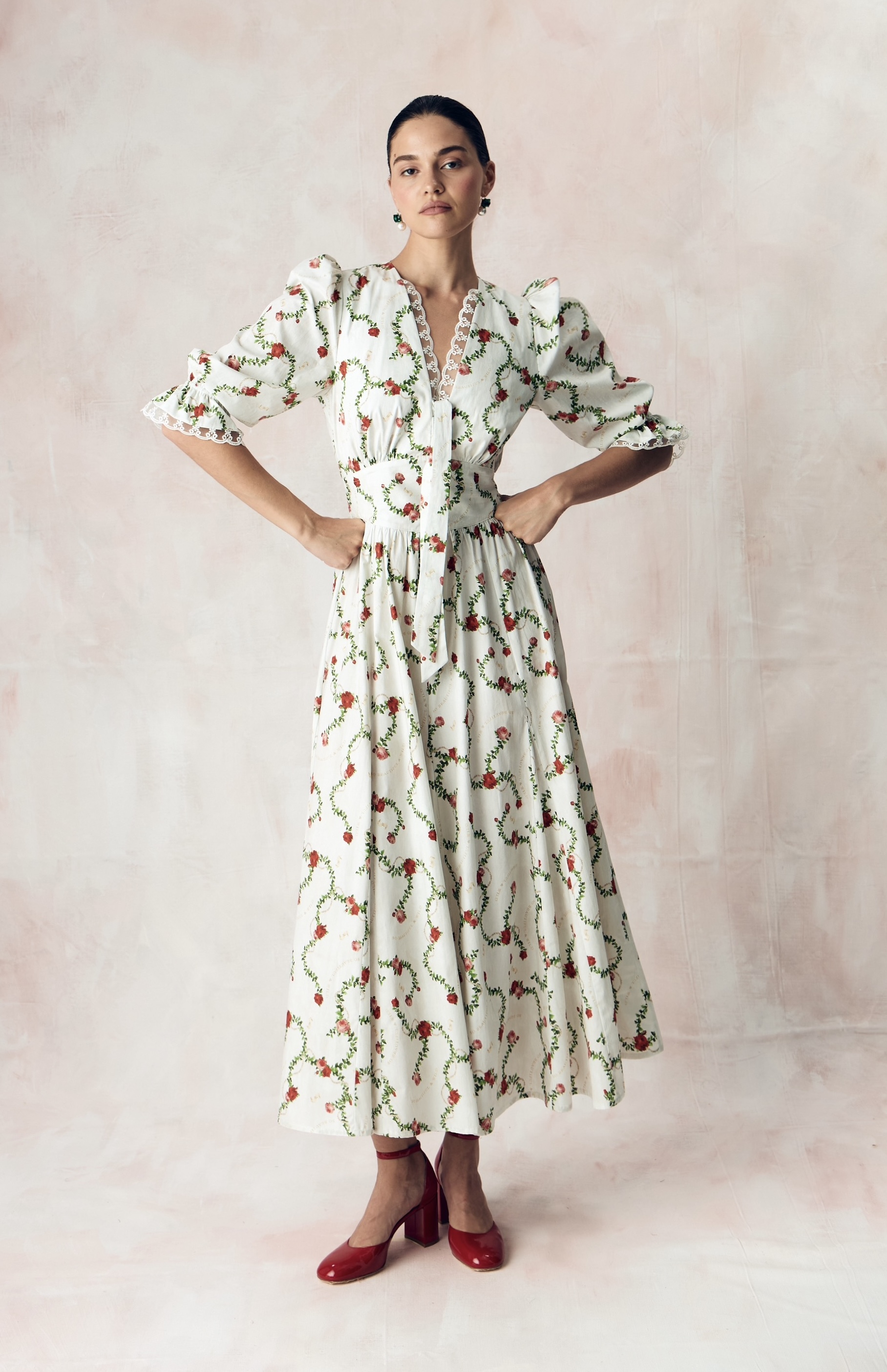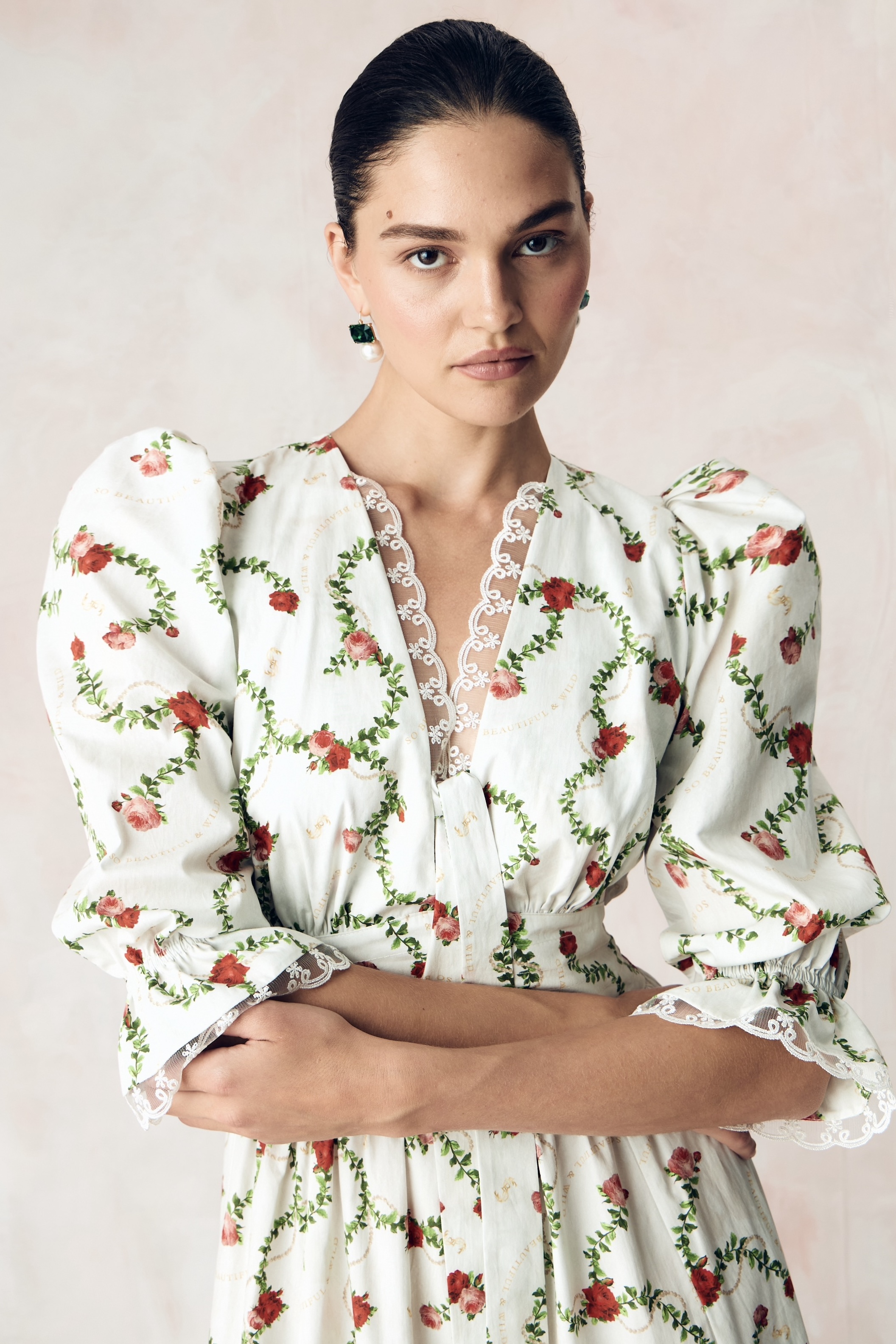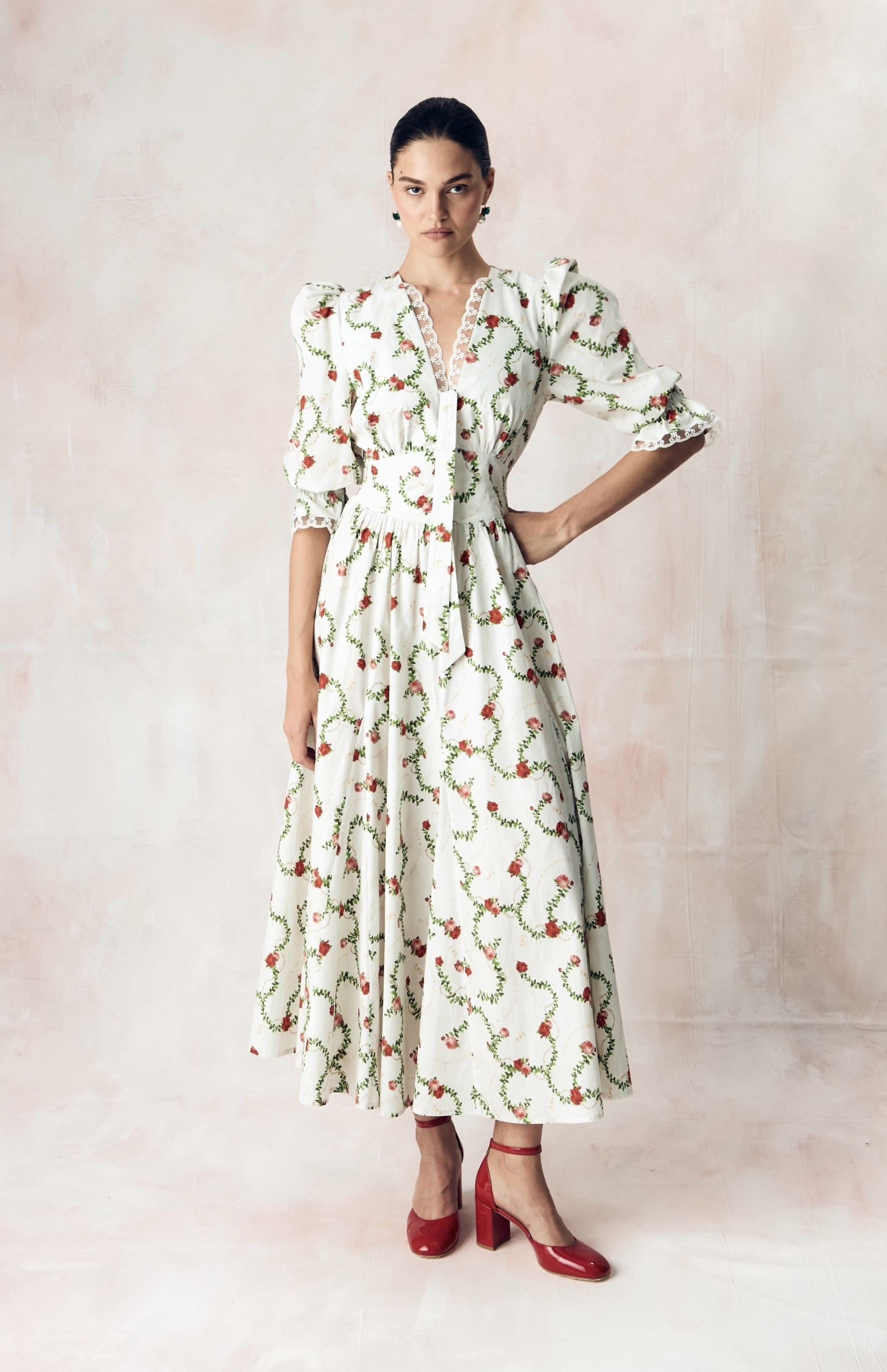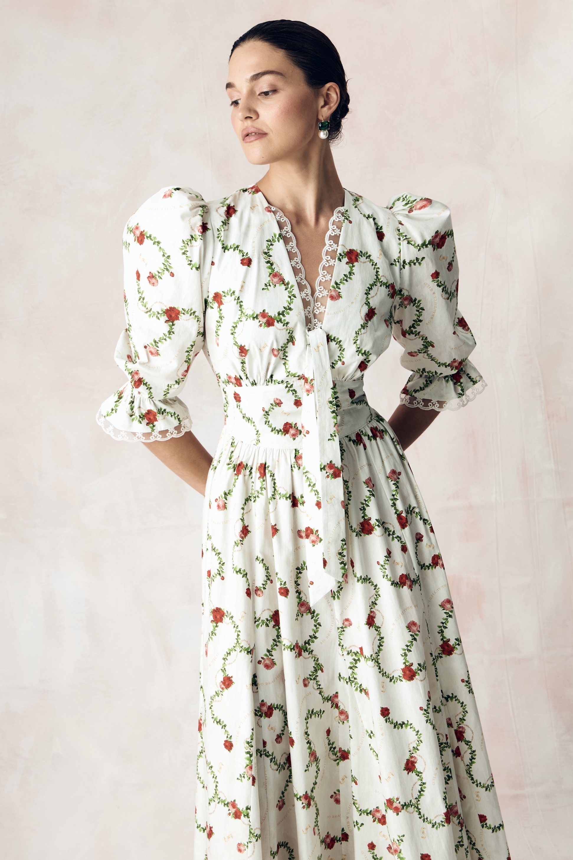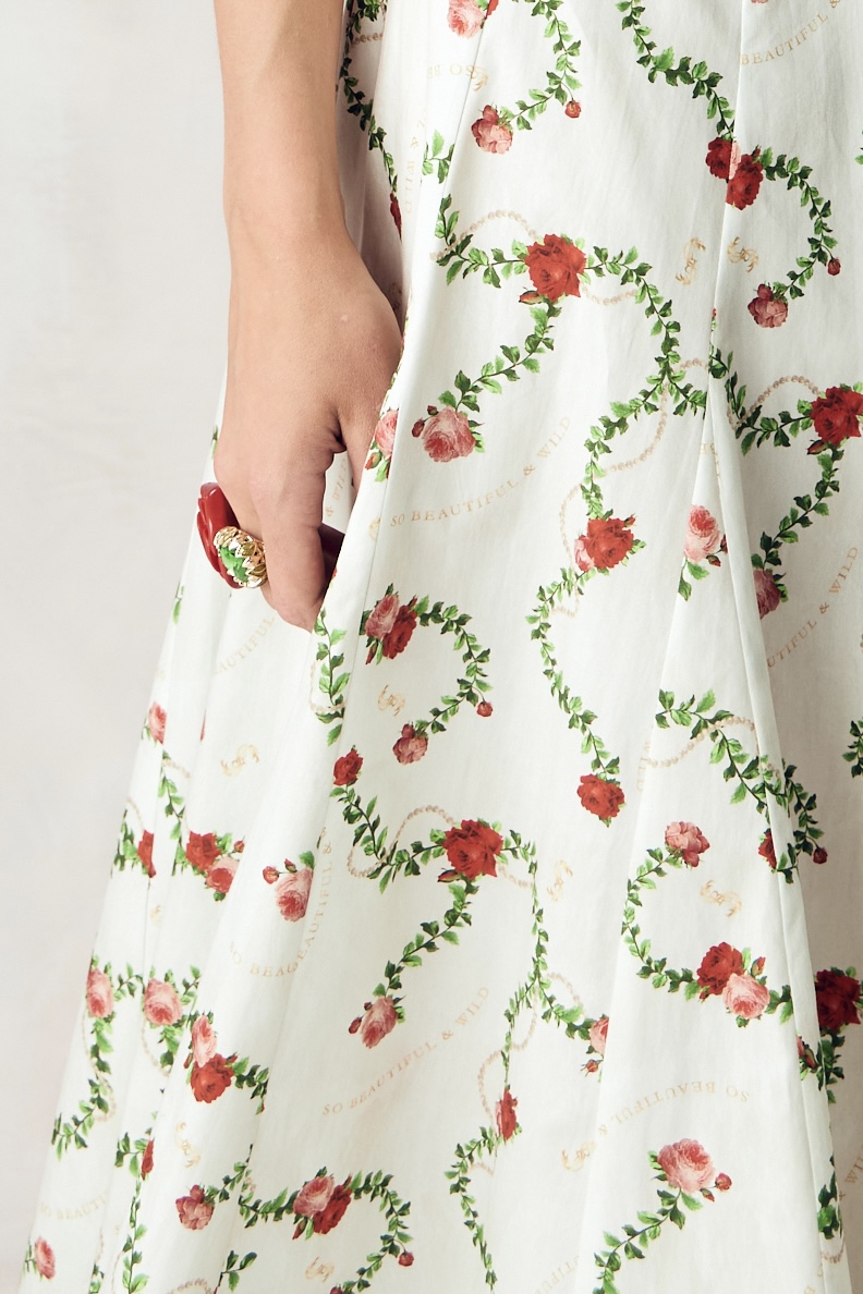 Платье годэ из облегченного хлопка поплина с авторским принтом «КОРОЛЕВСКАЯ РОЗА»