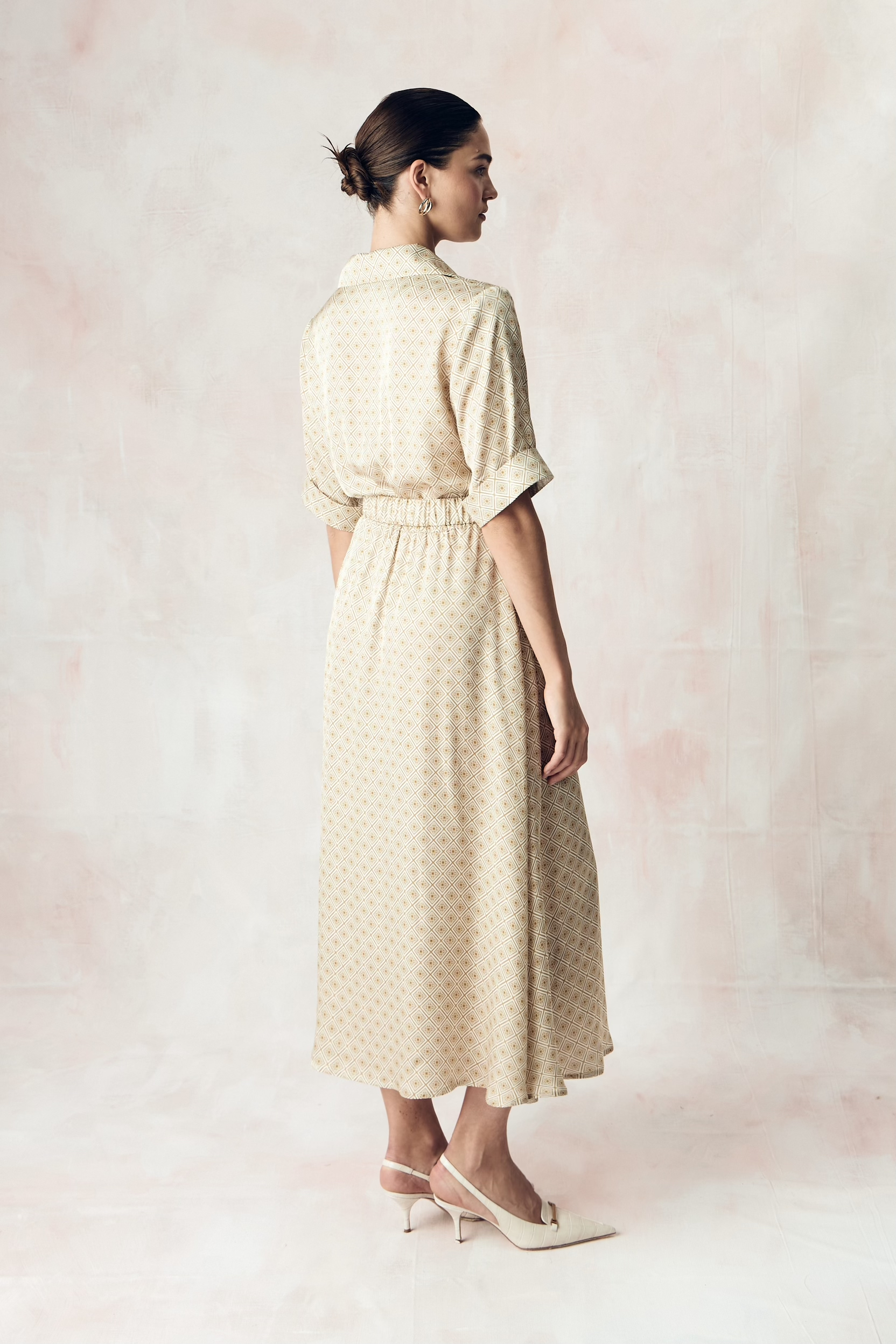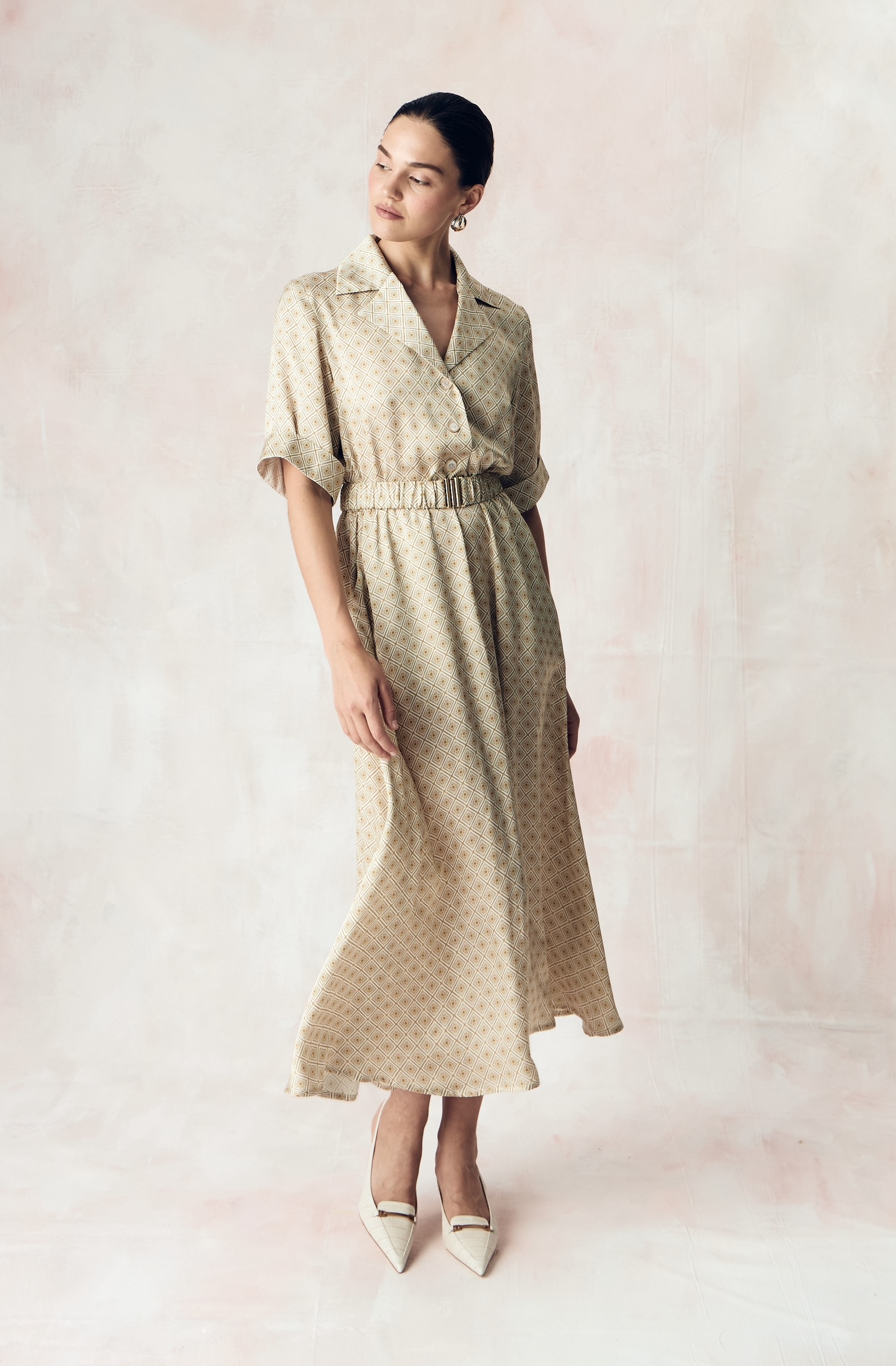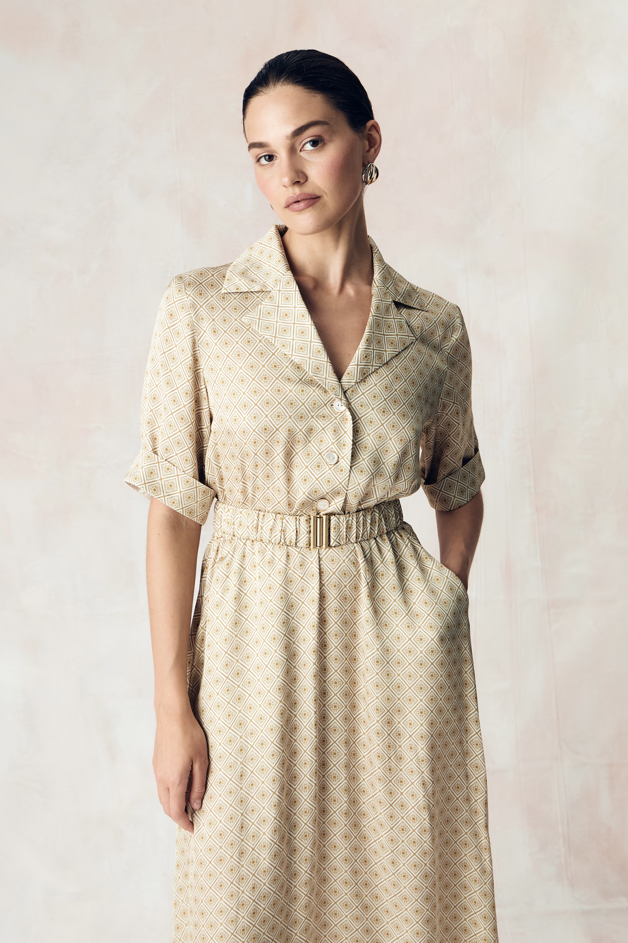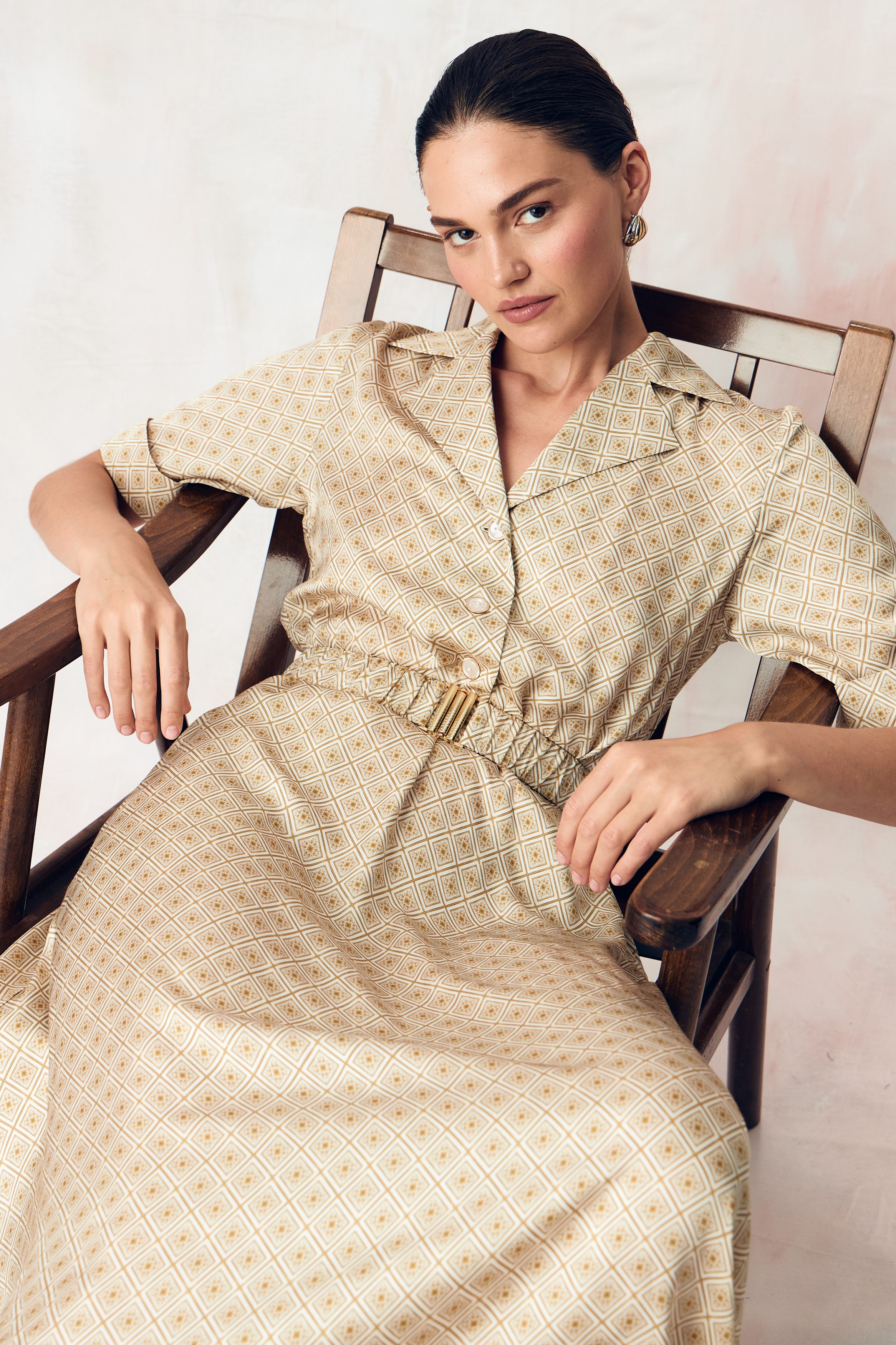 Авторский принт "ЮВЕЛИРНАЯ ГЕОМЕТРИЯ.ЗОЛОТО" по заказу SO BEAUTIFUL&WILD нанесен на экологичную сатиновую стрейч вискозу категории люкс на заводе в Италии с использованием самого высокотехнологичного оборудования в мире за счет которого обеспечивается великолепное качество печати и передача задуманного дизанером цвета с богатой детализацией рисунка.