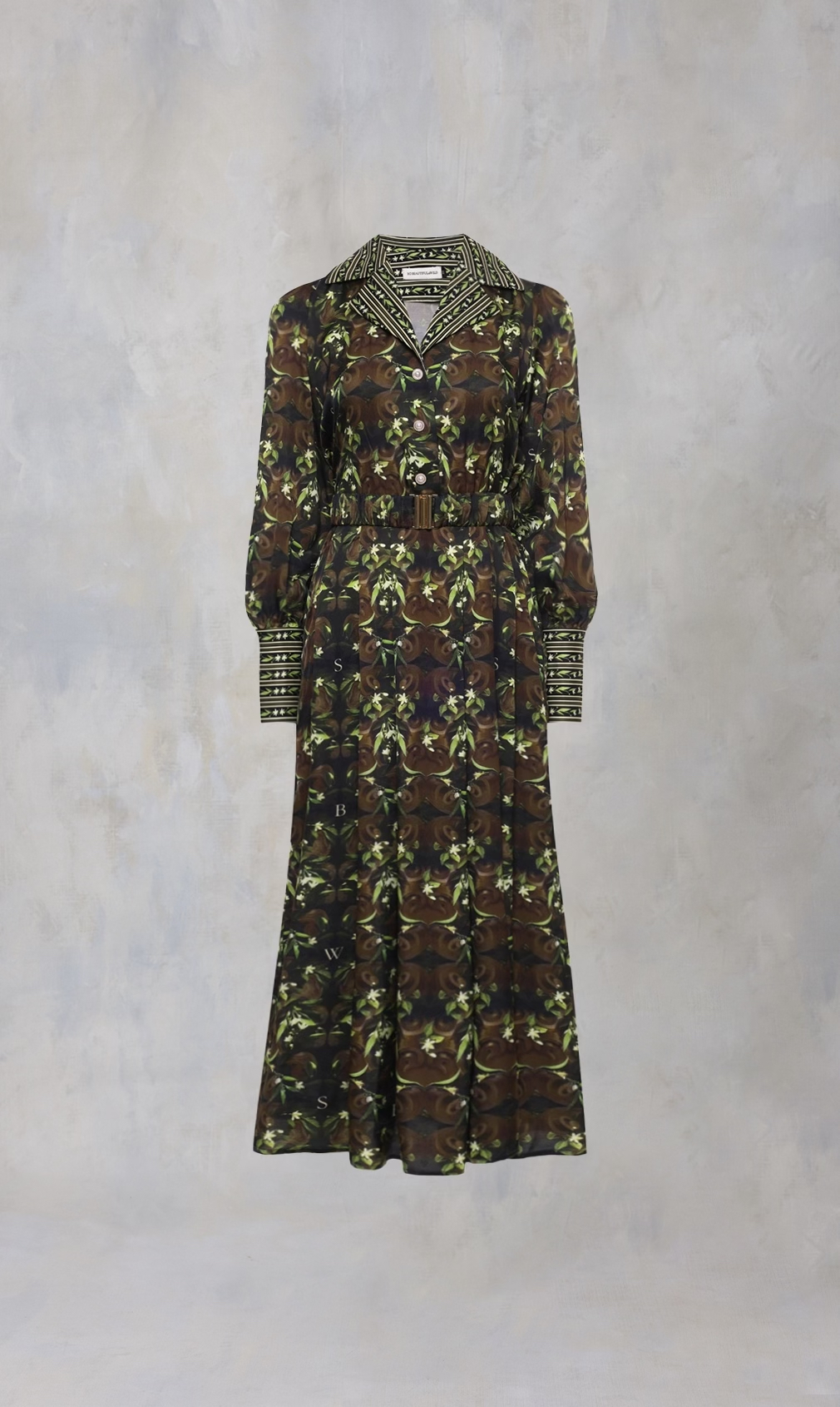 Платье из сатиновой вискозы с авторским принтом "ФЛОРЕНТИЙСКИЙ САД"