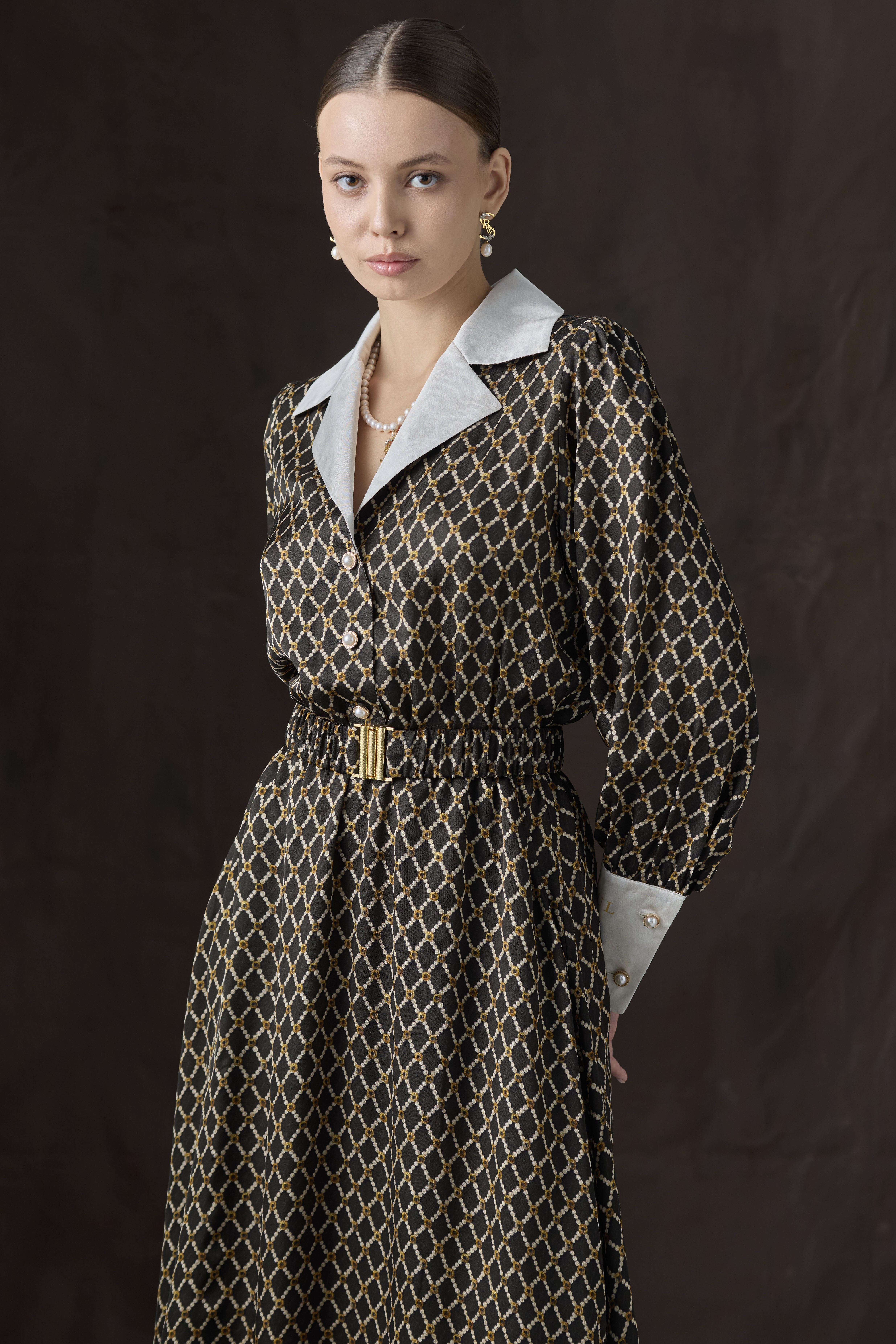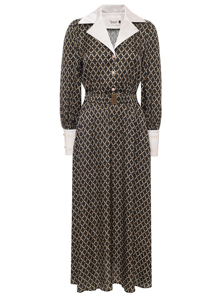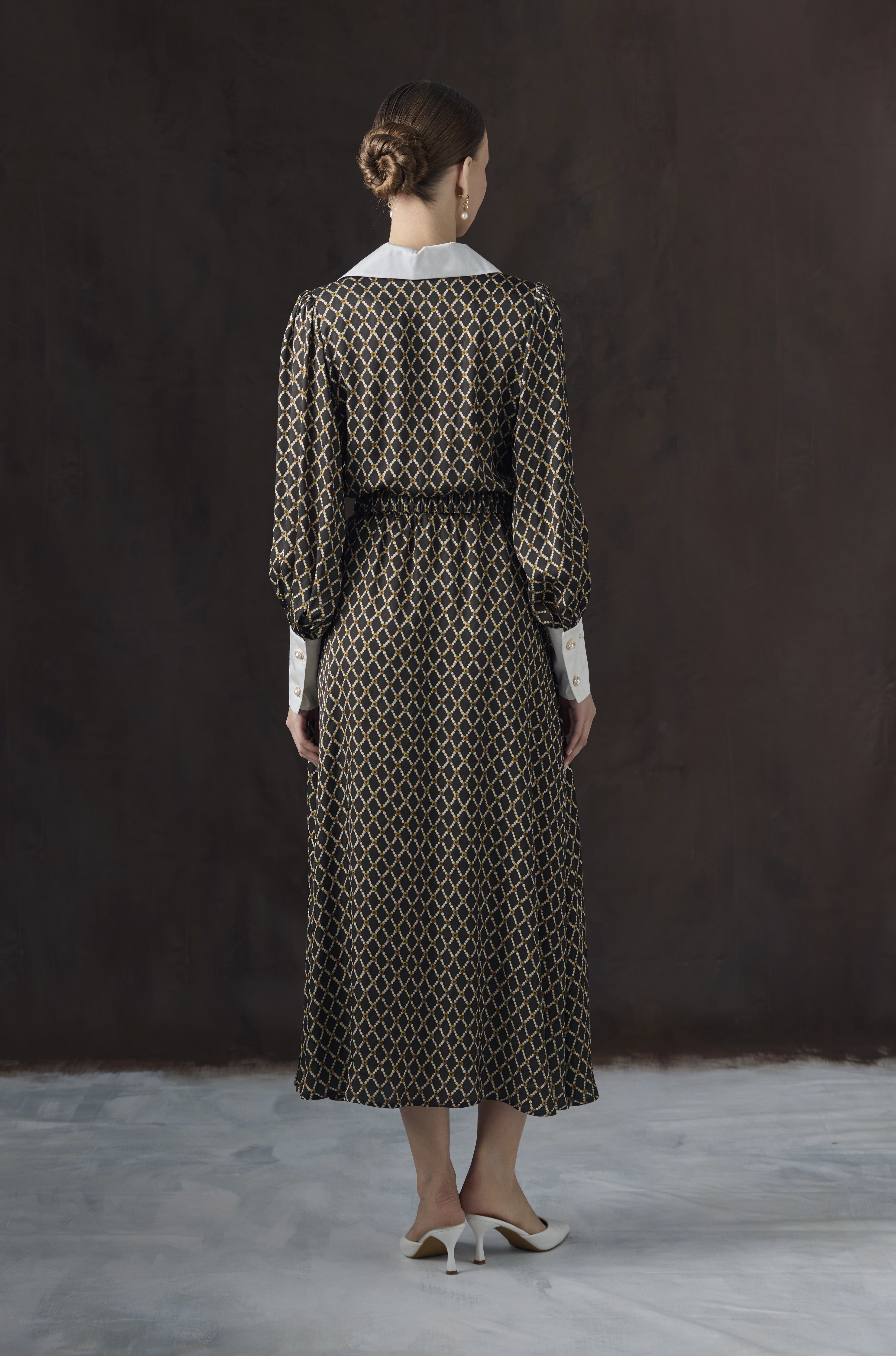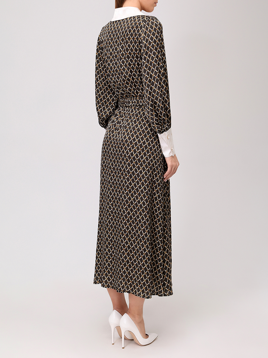 Платье из сатиновой вискозы с авторским принтом "ЖЕМЧУЖНАЯ ГЕОМЕТРИЯ"