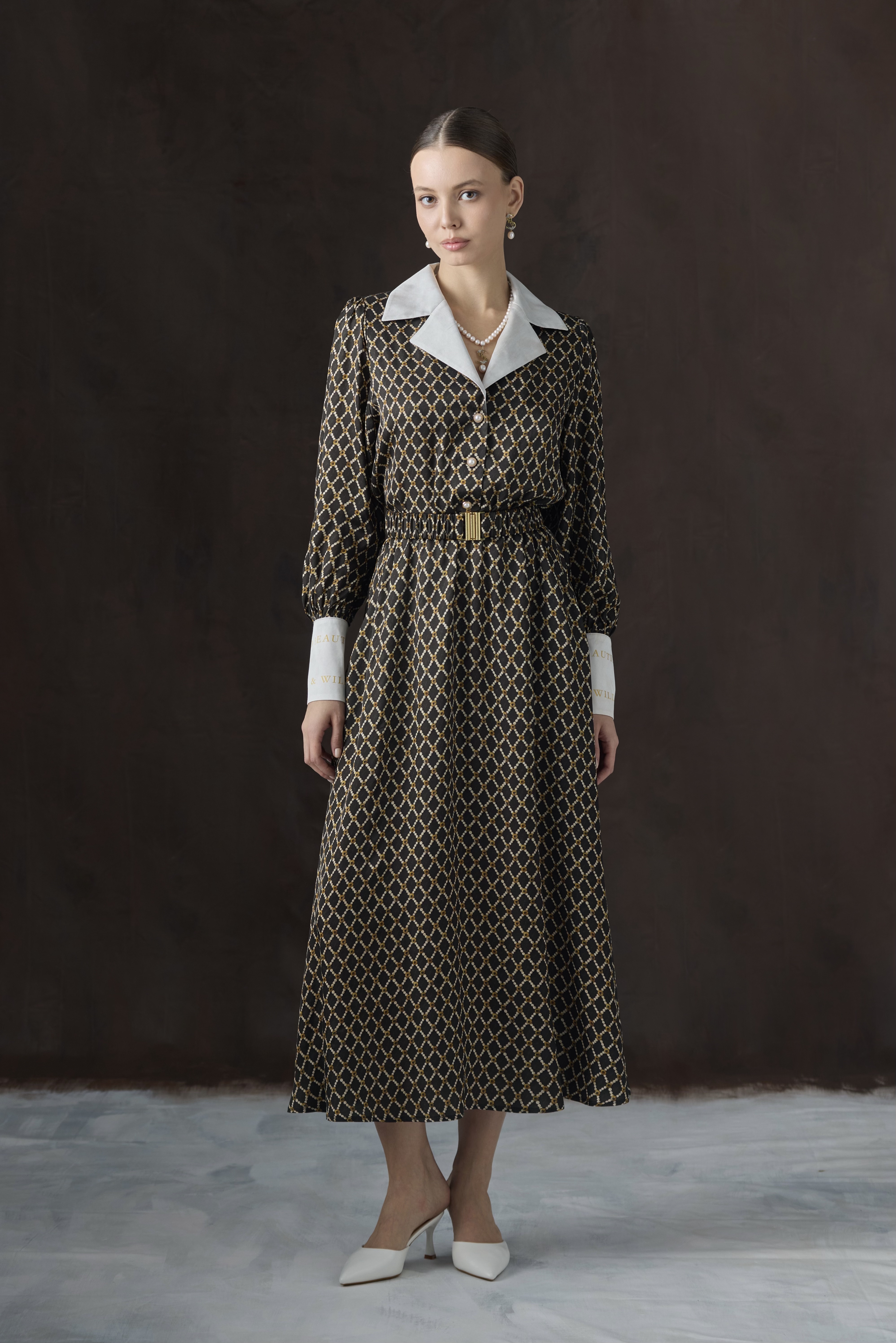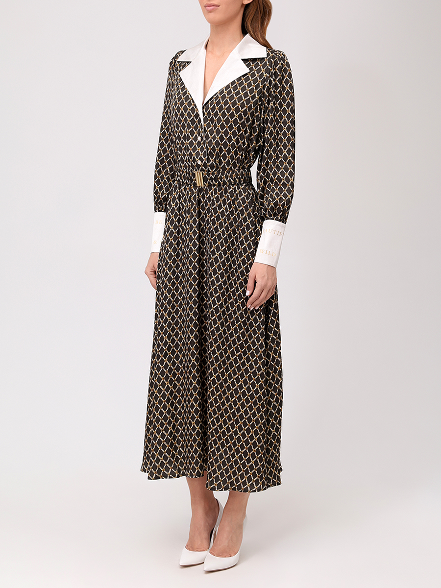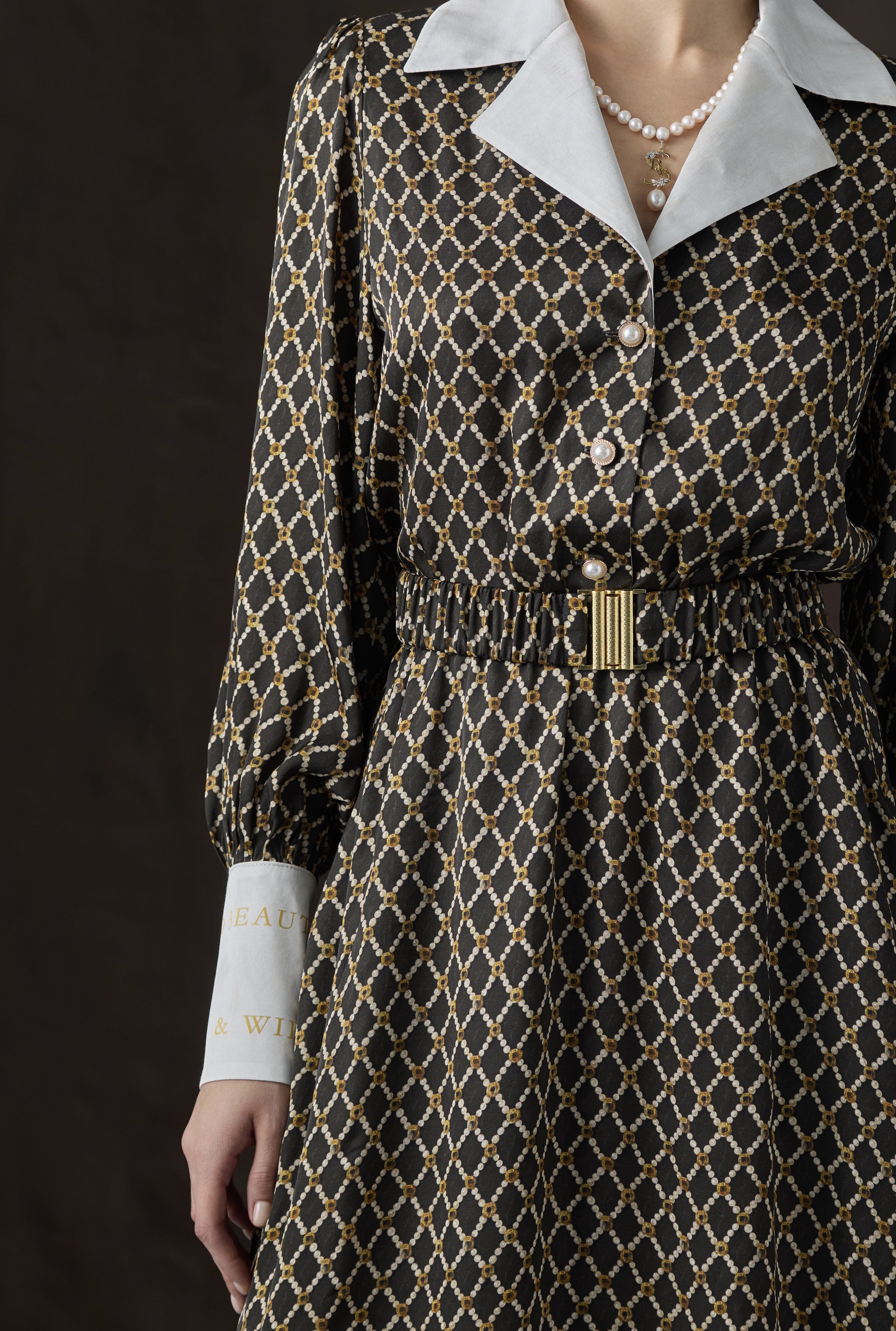 Платье из сатиновой вискозы с авторским принтом "ЖЕМЧУЖНАЯ ГЕОМЕТРИЯ"