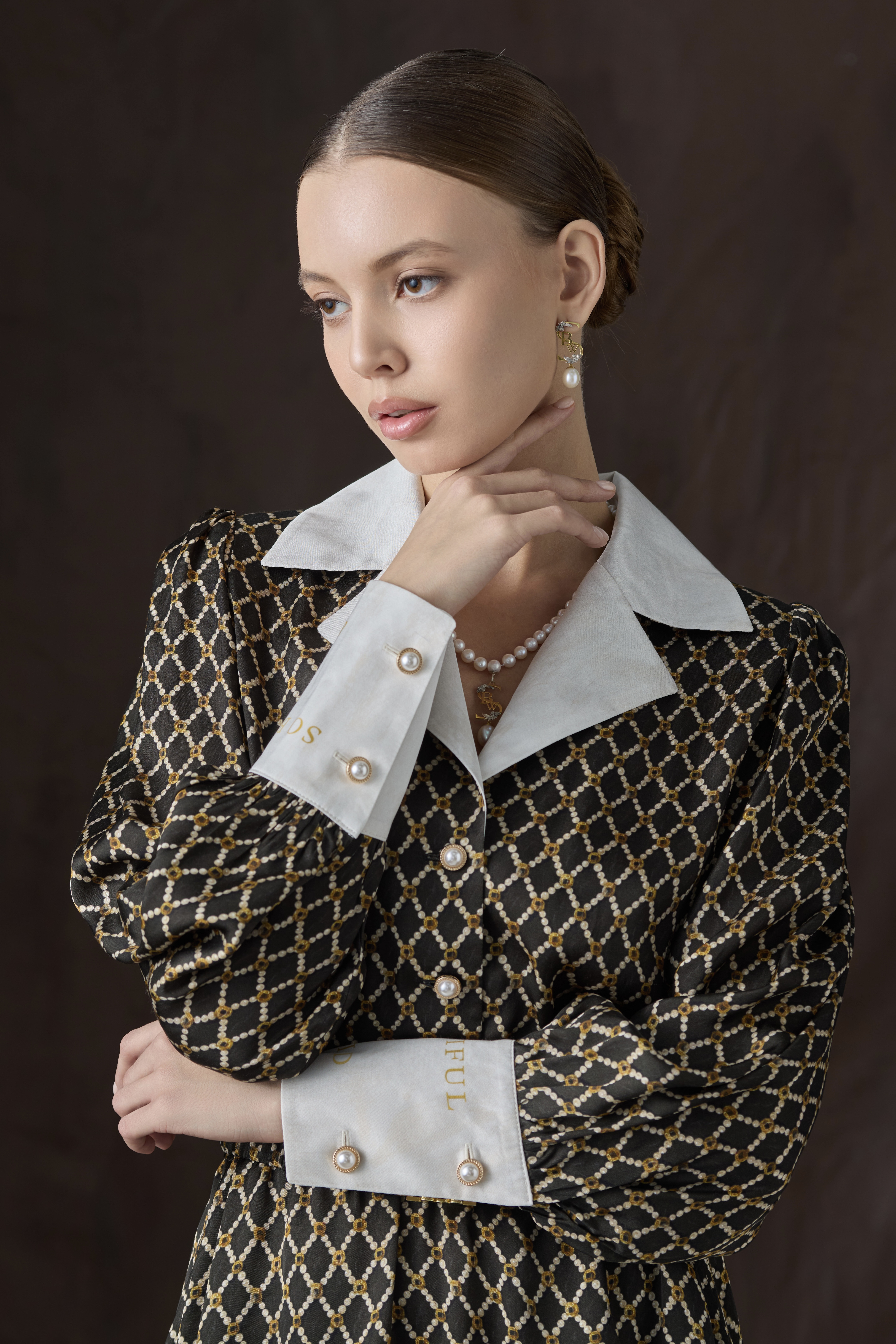 Принт PEARL GEOMETRY намекает на успех его обладательницы, умело подчеркивает его внешними проявлениями. Каждая деталь принта призвана вызывать уважение и признание, а геометричный дизайн придает ощущение статусности и уверенности, словно королевское облачение. Выражая свою индивидуальность через уникальные принты от SO BEAUTIFUL&WILD, вы становитесь воплощением стиля и элегантности.