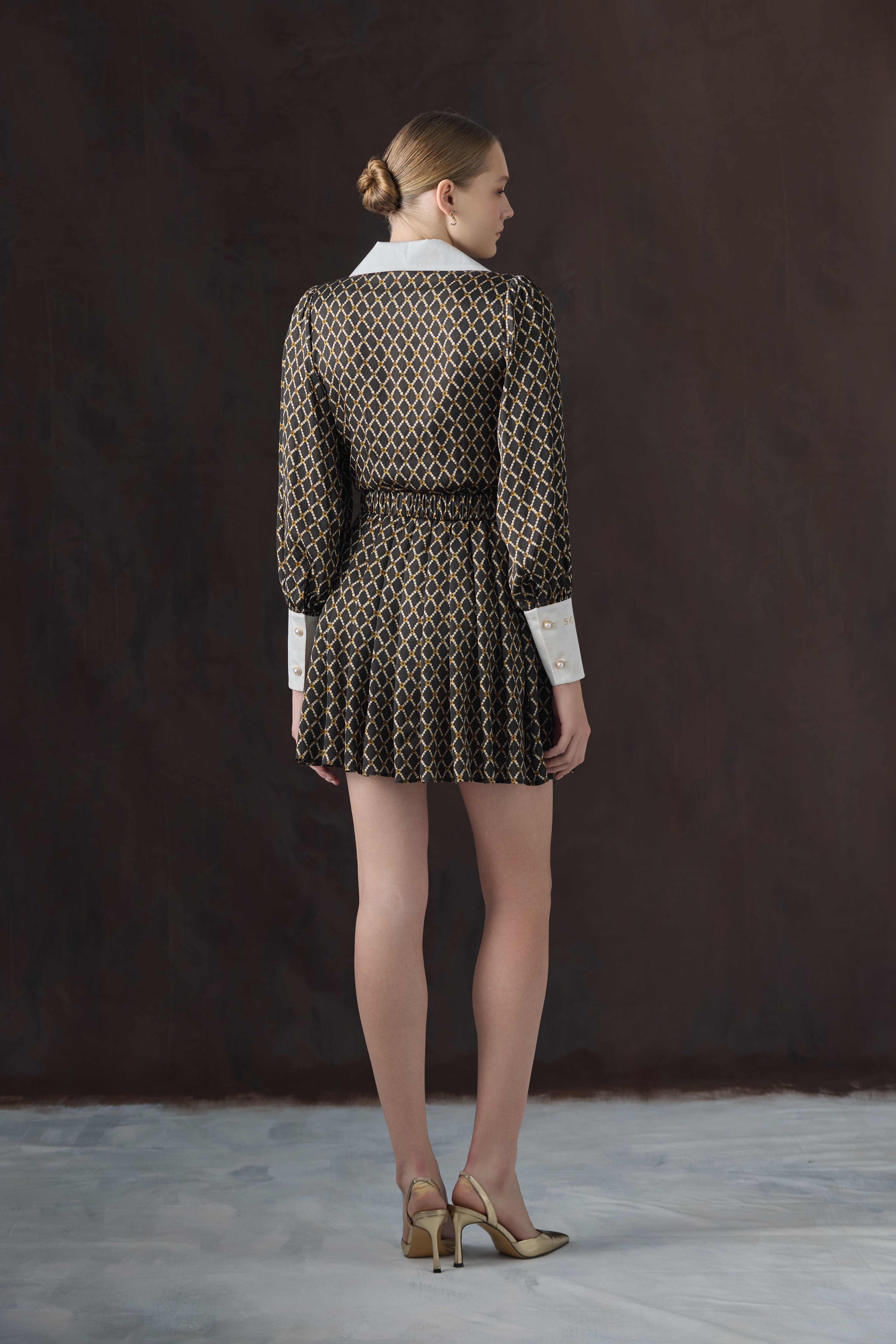 Платье из сатиновой вискозы с авторским принтом "ЖЕМЧУЖНАЯ ГЕОМЕТРИЯ"