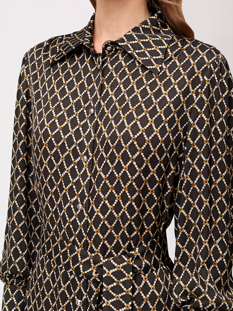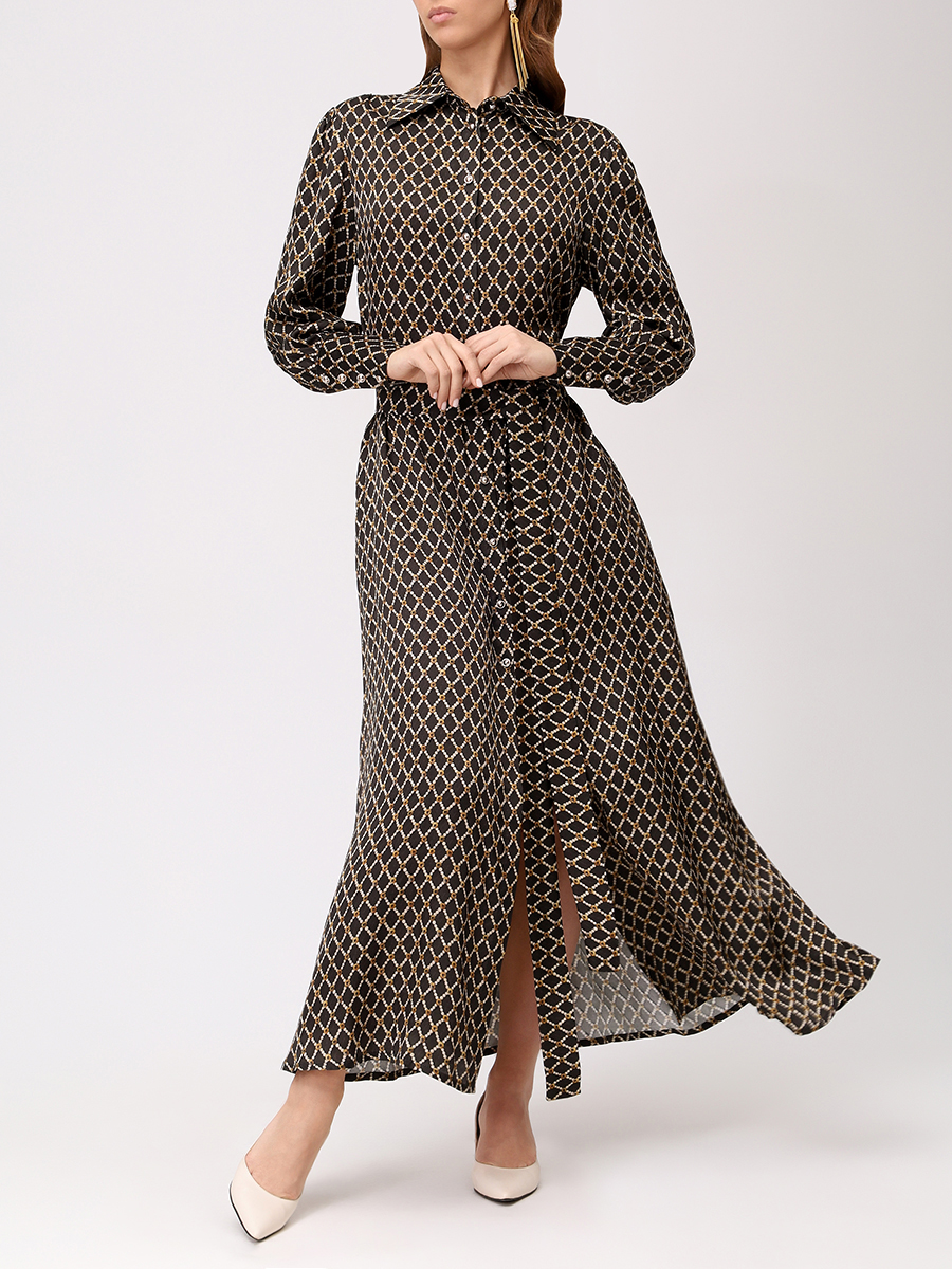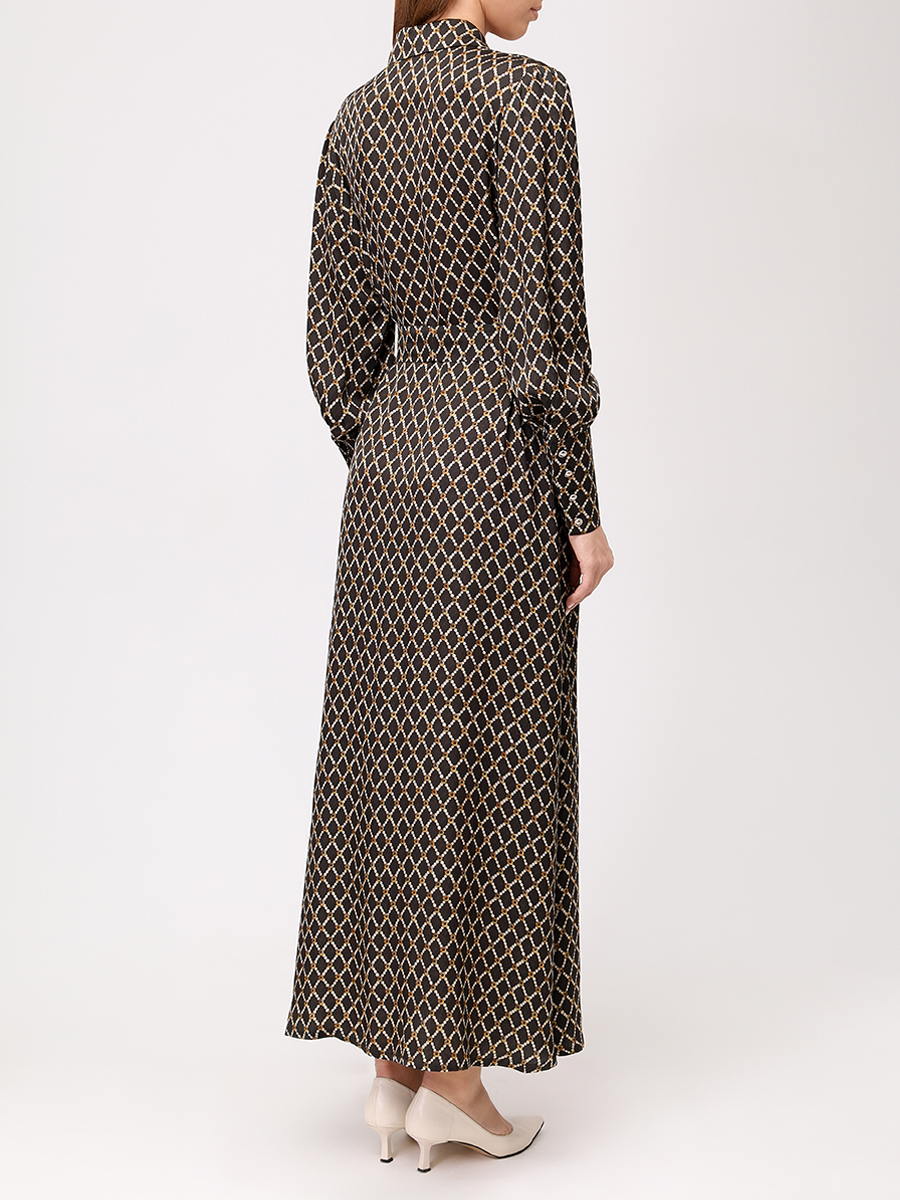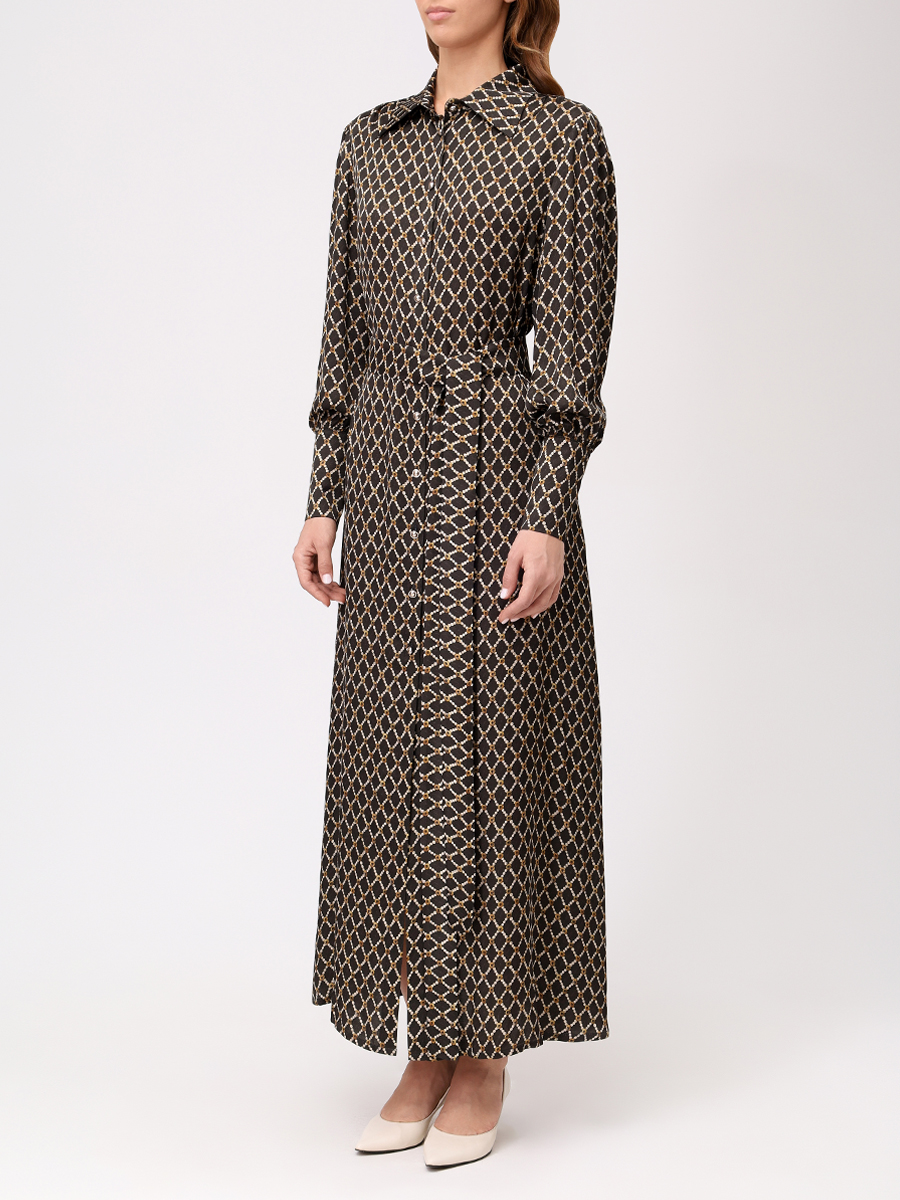 Платье из сатиновой вискозы с авторским принтом "ЖЕМЧУЖНАЯ ГЕОМЕТРИЯ"