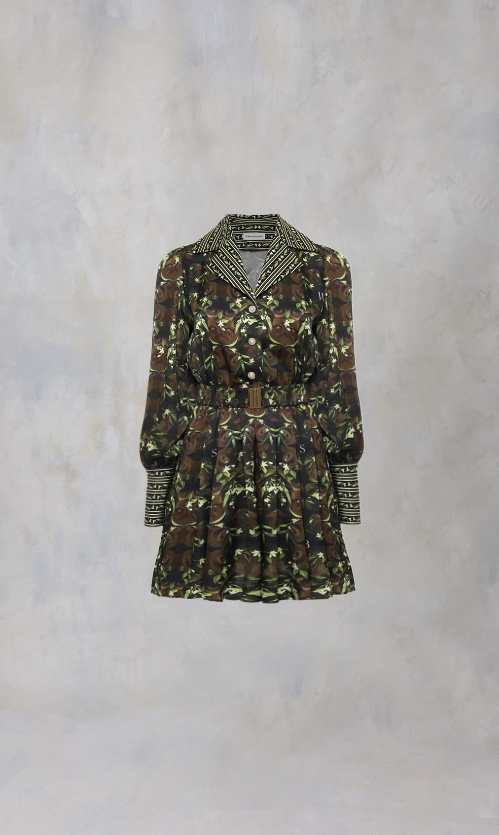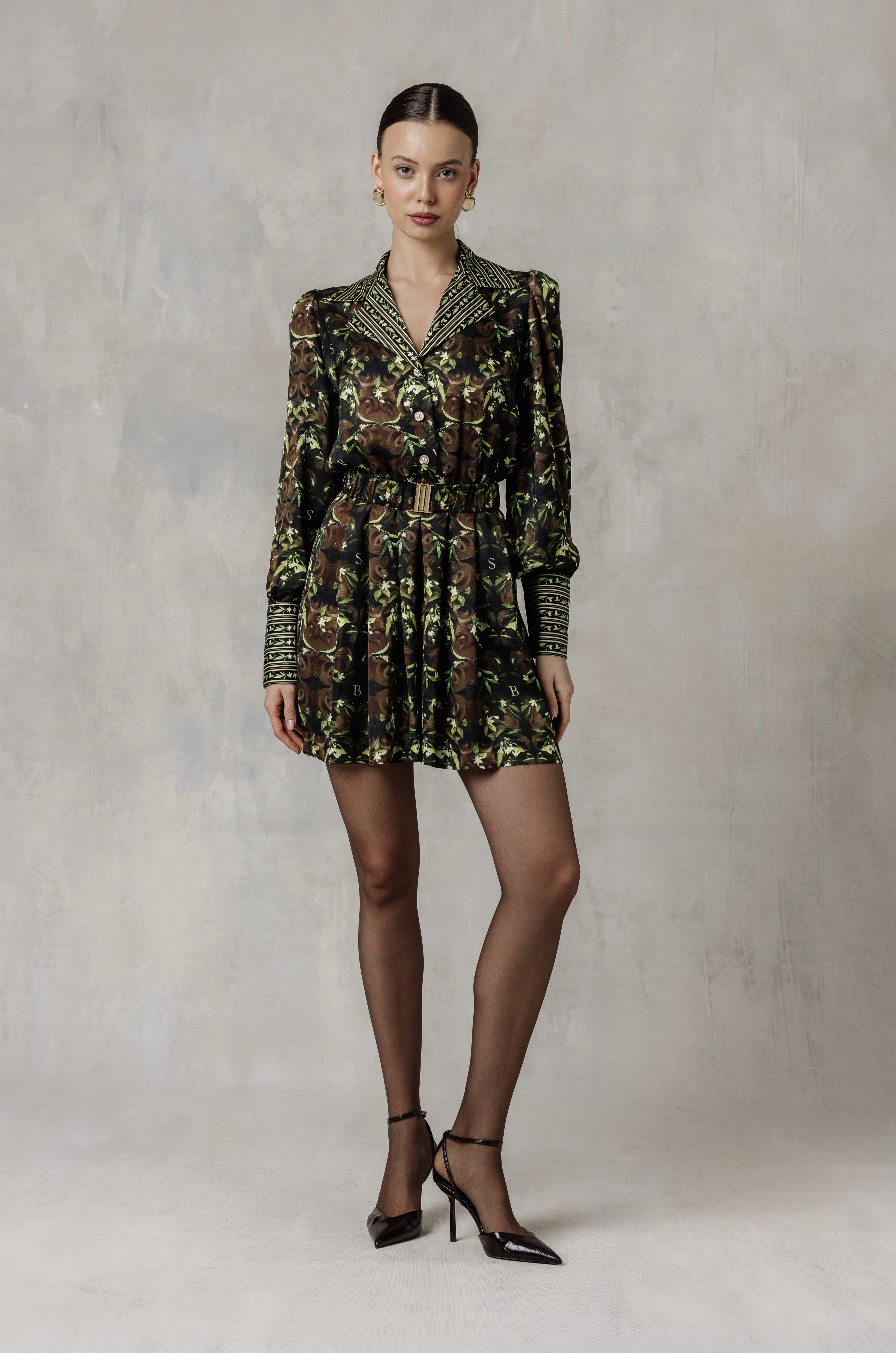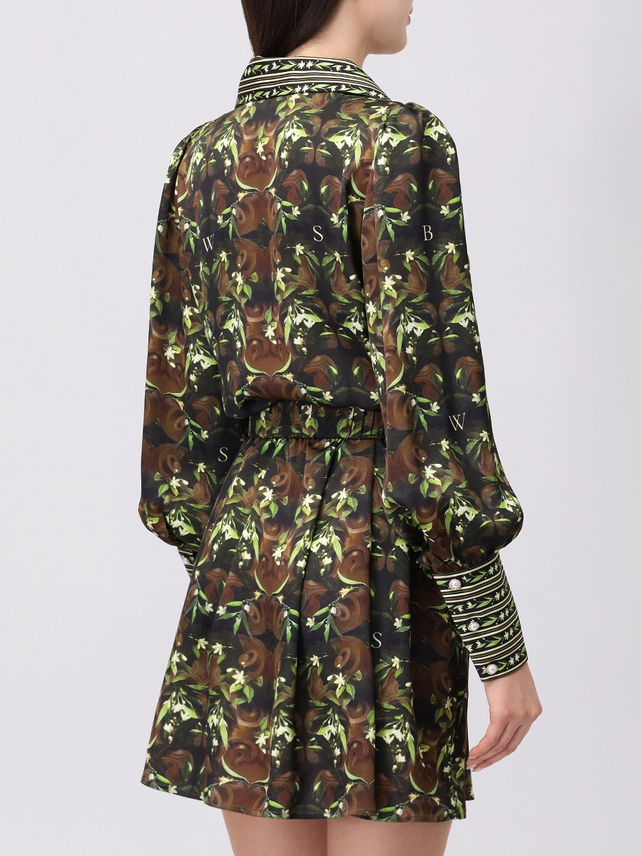 Платье из сатиновой вискозы в длине мини с авторским принтом "ФЛОРЕНТИЙСКИЙ САД"