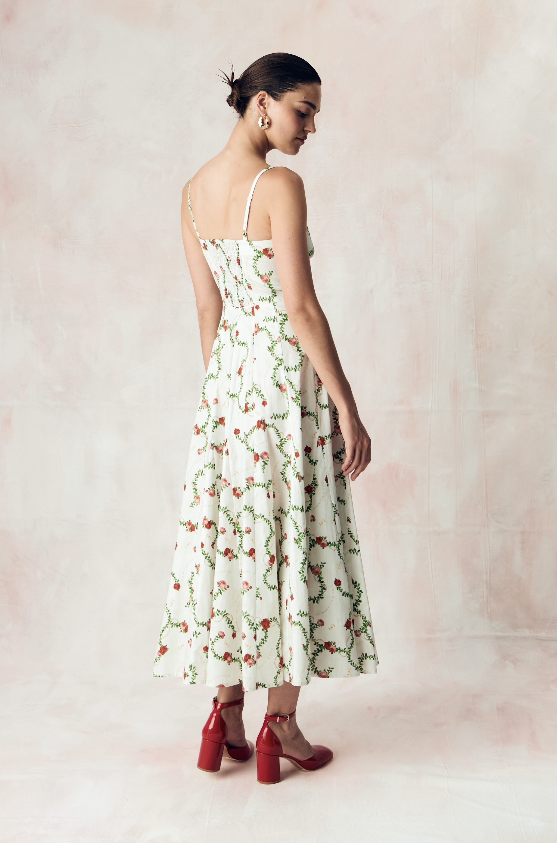 Платье из стрейч поплина с авторским принтом «КОРОЛЕВСКАЯ РОЗА»