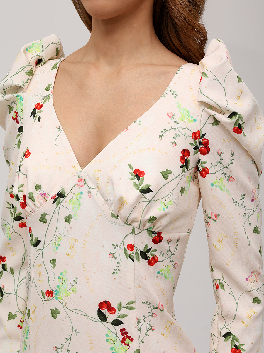 Платье с авторским принтом "ВИШНЕВЫЙ САД"