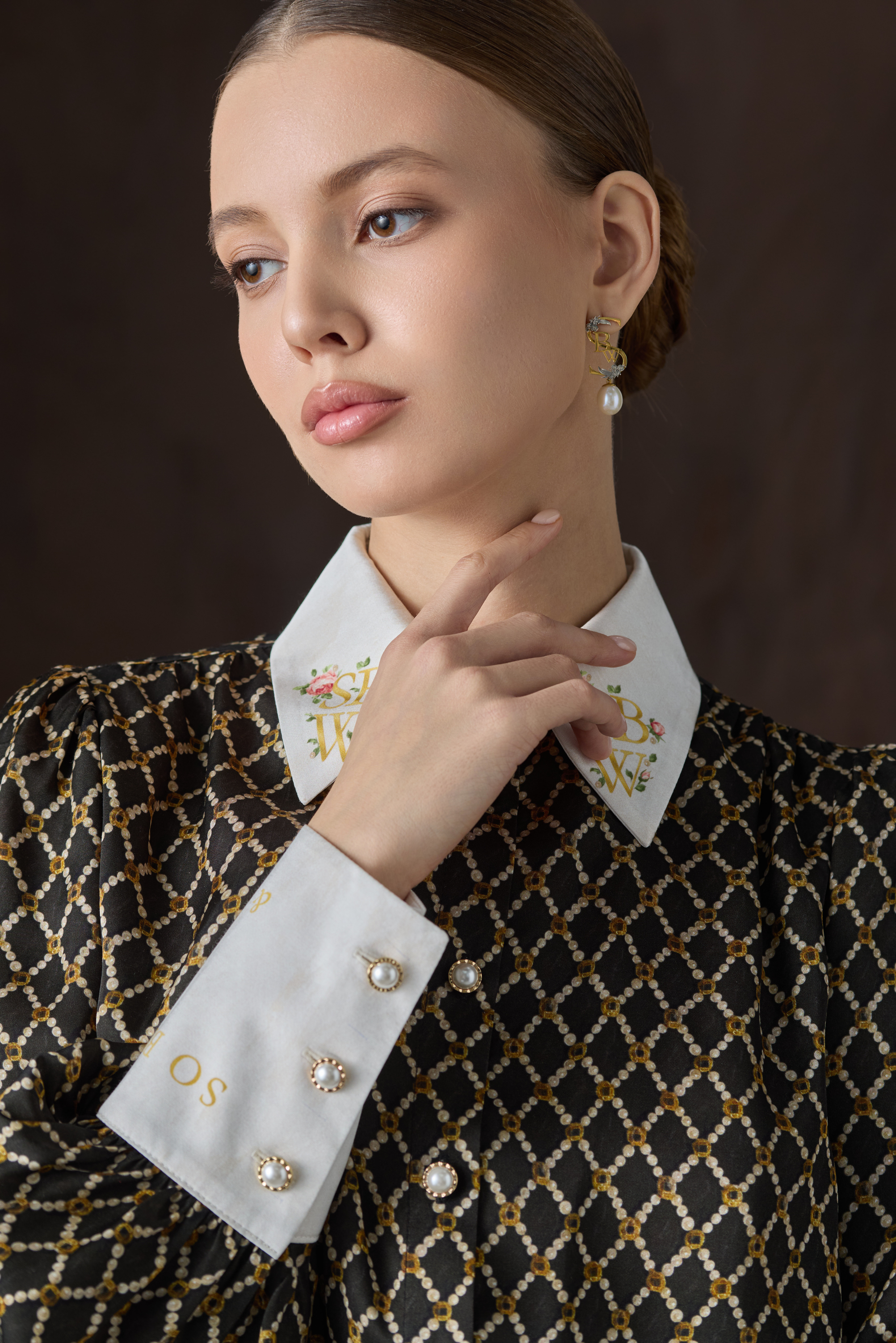 Имитация жемчужного шитья, вдохновленная роскошными декоративными элементами дворянских платьев 17 века, переносит нас в мир величия и благородства. Ромбовидная сетка скрупным ювелирным фрагментом наполняет пространство принта PEARL GEOMETRY объемным изображением жемчужин, создает впечатляющую игру светотени. Этот визуальный эффект оптической иллюзии подчеркивает строгую геометричность и элегантность рисунка, дарит утонченность каждой линии.