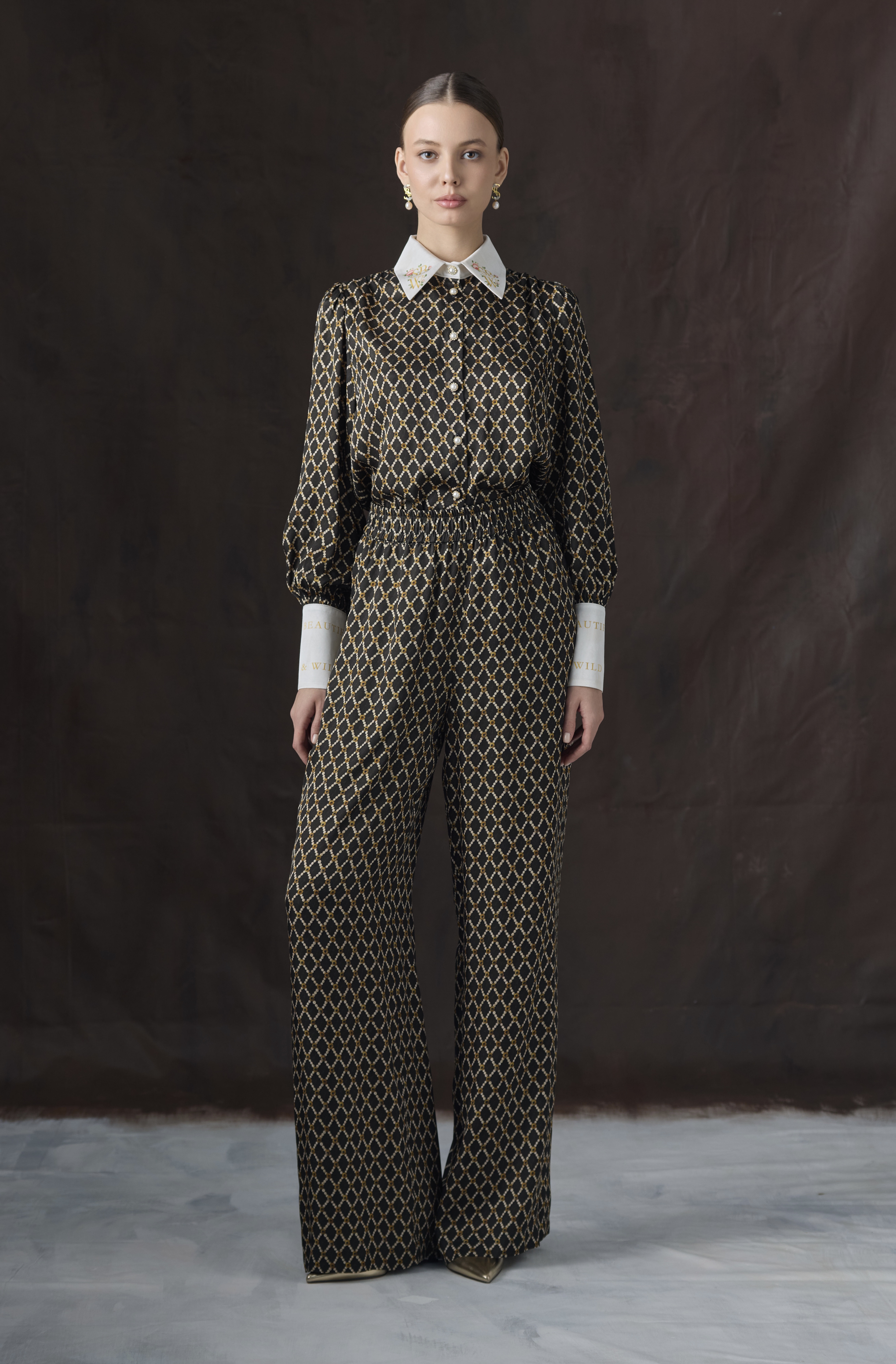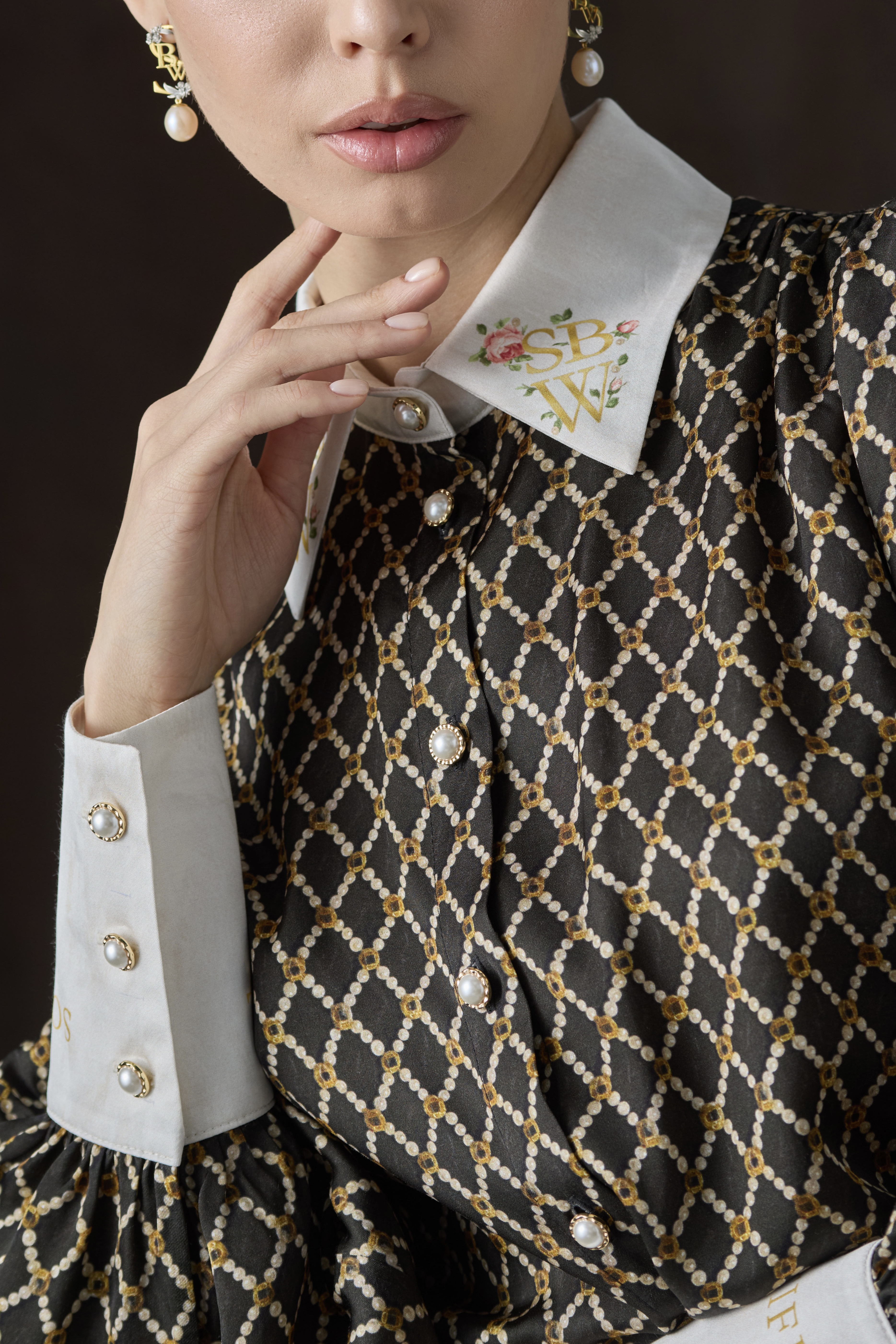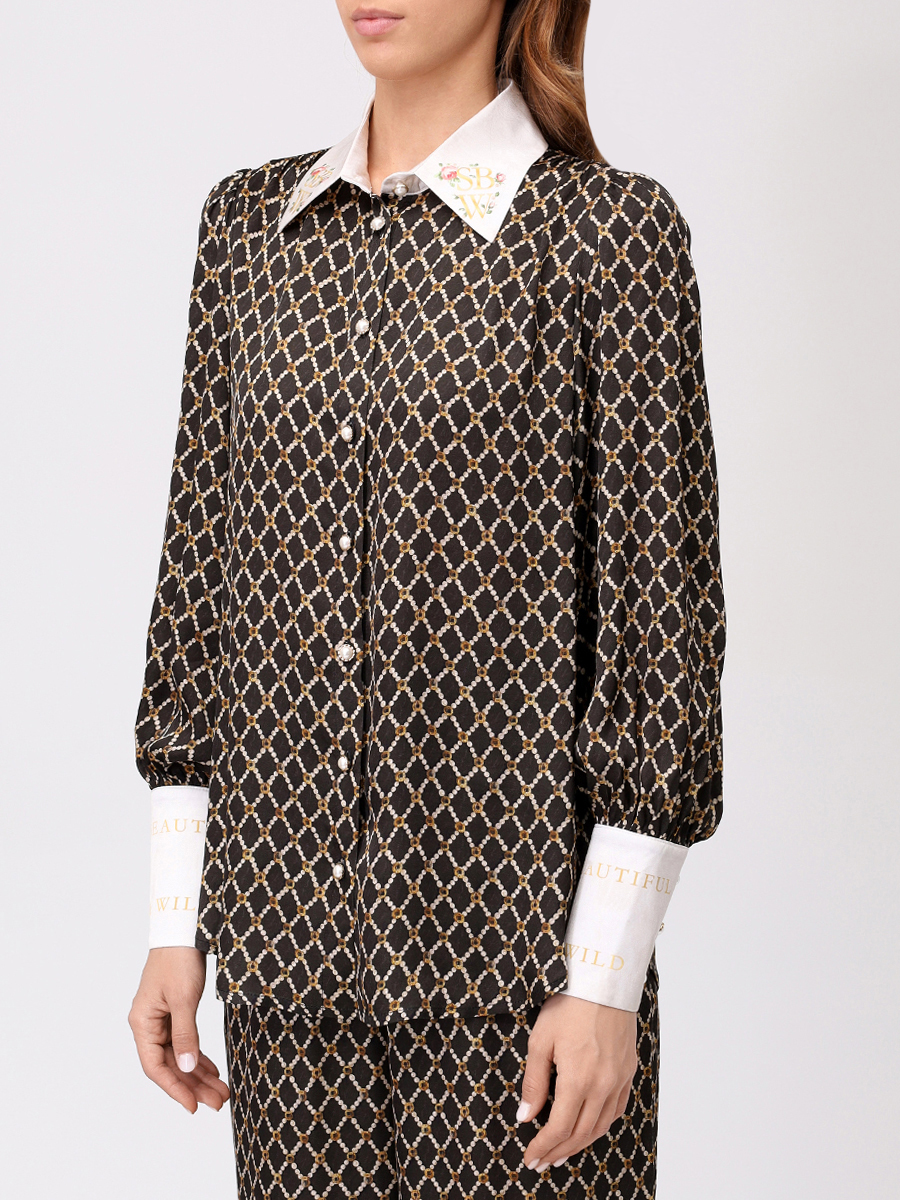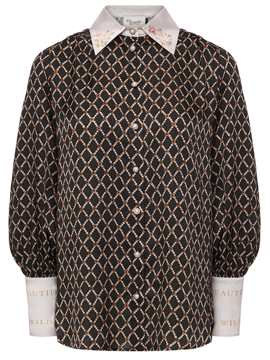 Рубашка из сатиновой вискозы с авторским принтом "ЖЕМЧУЖНАЯ ГЕОМЕТРИЯ"