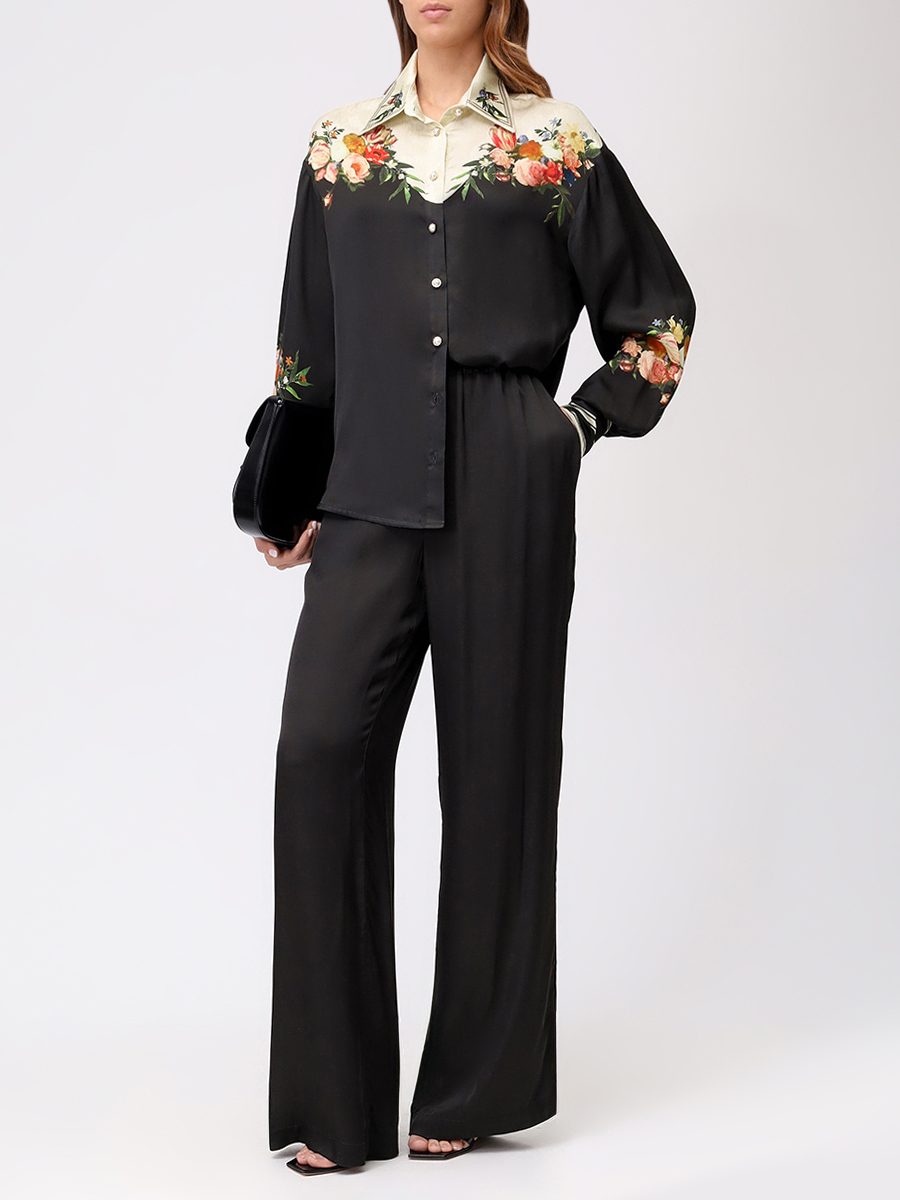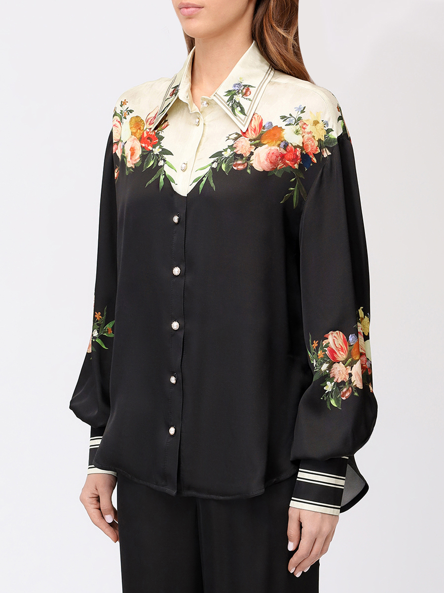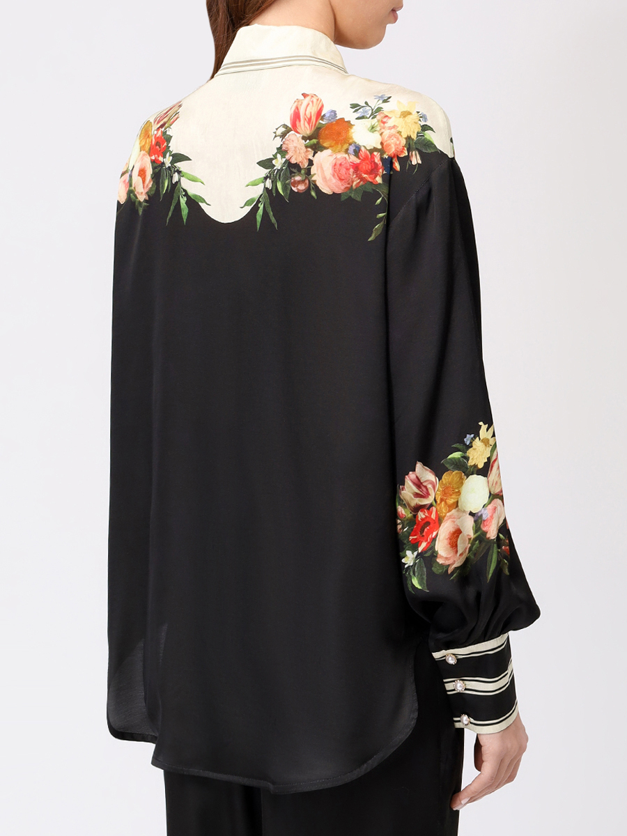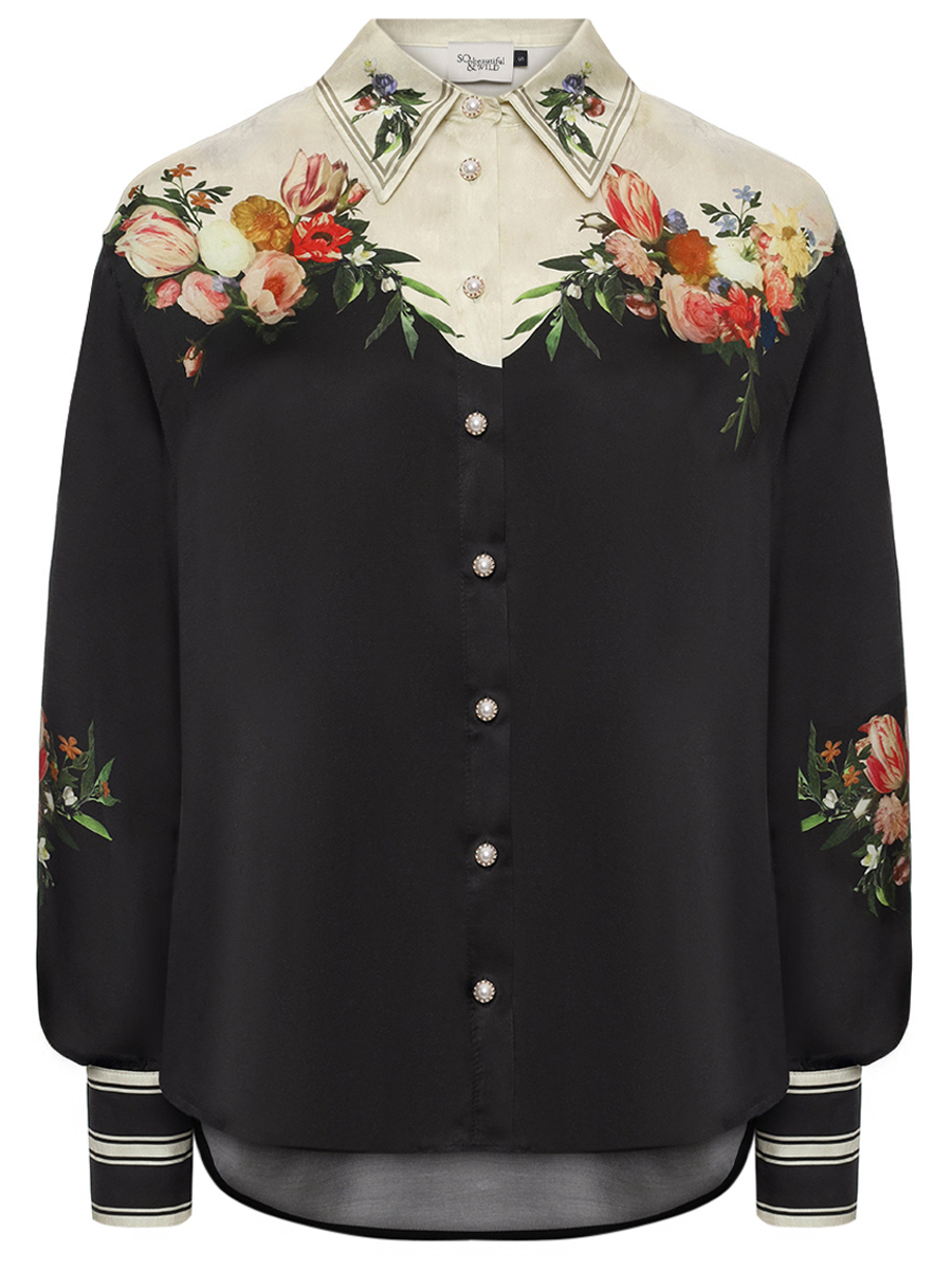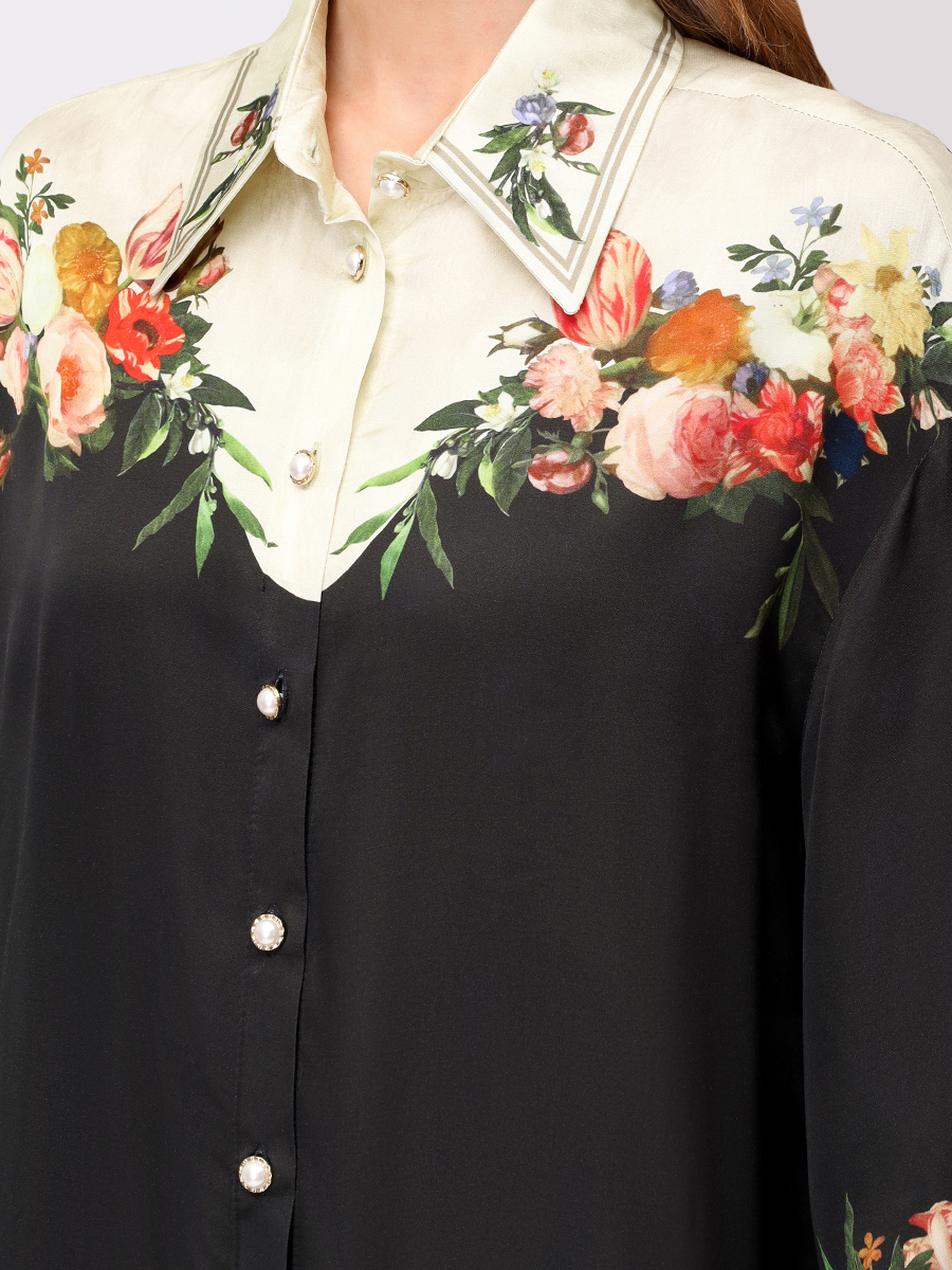 Рубашка с авторским принтом "ГОЛЛАНДСКИЕ ЦВЕТЫ. ЧЕРНЫЙ"