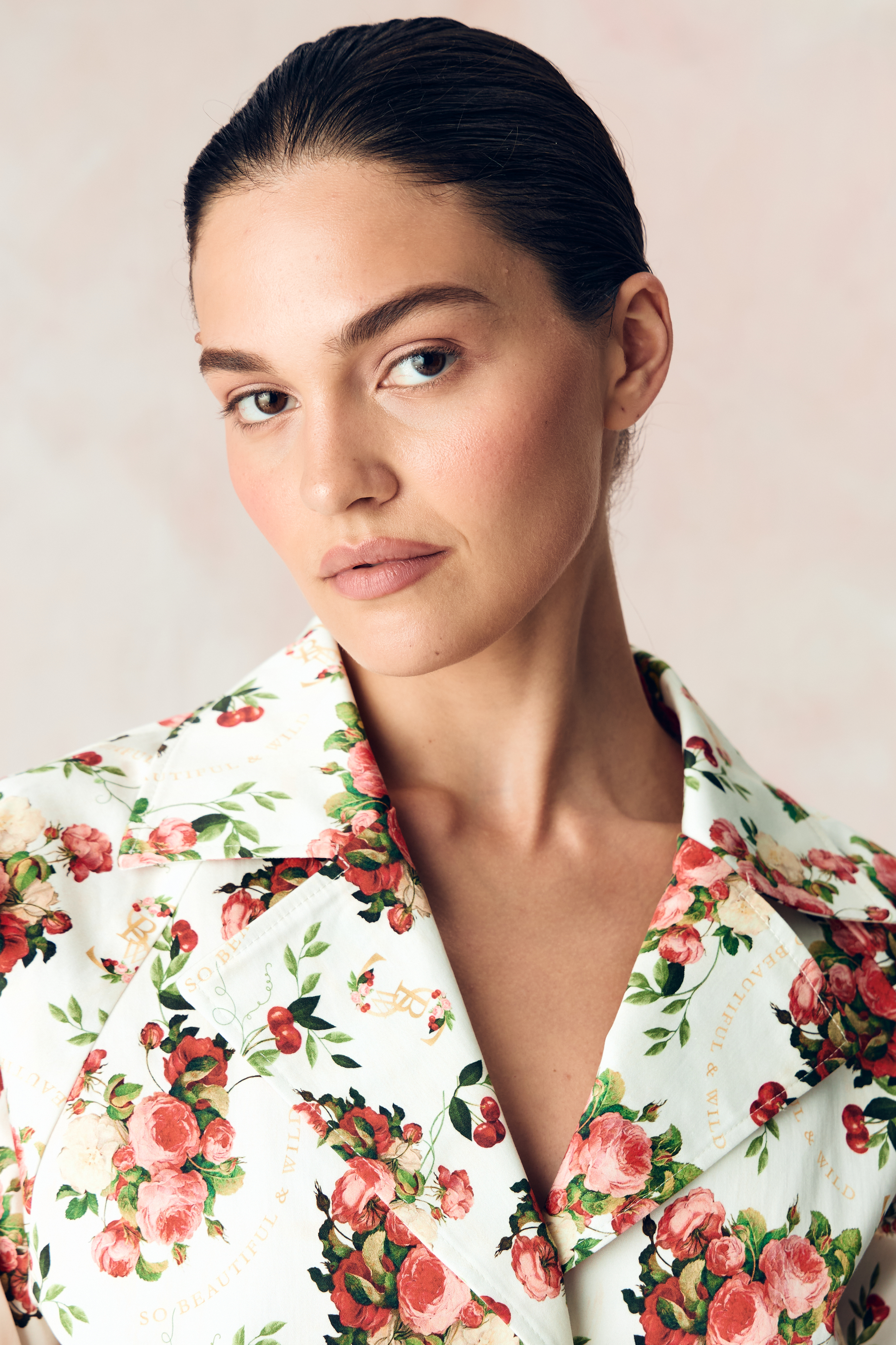 Авторский принт "НАТЮРМОРТ. ПИОНЫ И ВИШНИ" по заказу SO BEAUTIFUL&WILD нанесен на экологичный стрейч поплин с сатиновым отблеском категории люкс на заводе в Италии с использованием самого высокотехнологичного оборудования в мире за счет которого обеспечивается великолепное качество печати и передача задуманного дизанером цвета с богатой детализацией рисунка.